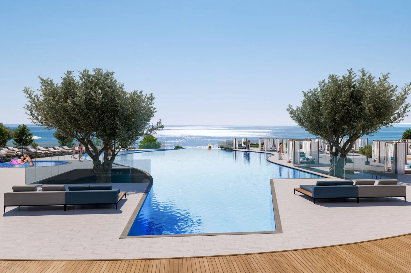 The project features a luxury spa, beautifully landscaped gardens, a children’s playground, underground parking, an impressive 50-meter infinity pool, as well as dedicated kids’ pools. Additional amenities include a sea-facing gym, a resident’s lobby, a bistro, and 24-hour concierge services. The apartment itself is stylishly designed and finished with materials and interiors created by renowned designers.