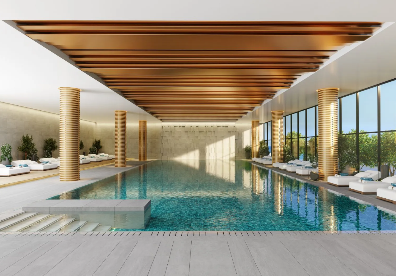The project features a luxury spa, beautifully landscaped gardens, a children’s playground, underground parking, an impressive 50-meter infinity pool, as well as dedicated kids’ pools. Additional amenities include a sea-facing gym, a resident’s lobby, a bistro, and 24-hour concierge services. The apartment itself is stylishly designed and finished with materials and interiors created by renowned designers.