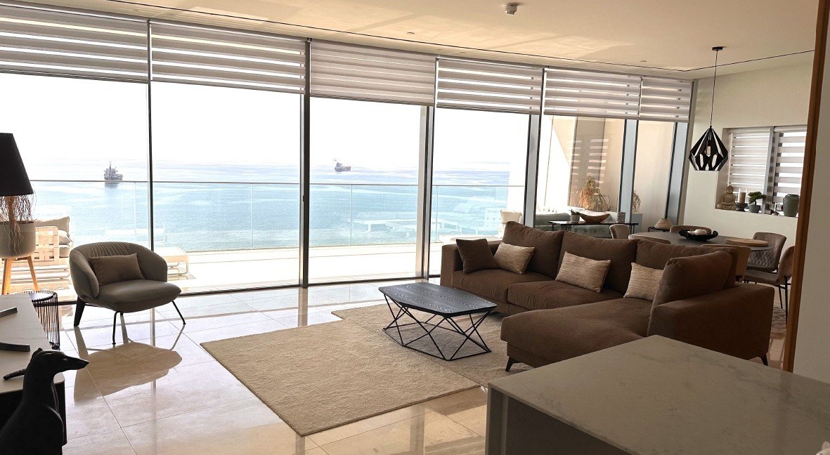 This luxury 3-bedroom apartment is located in a gated tower in Neapolis, Limassol, close to shops, cafes, and restaurants, offering stunning sea views. The apartment features 3 bedrooms, 3 bathrooms, and an open-plan kitchen and living area with stylish design and high-quality furnishings. The complex includes a communal swimming pool, SPA center, gym, and 24-hour concierge service.