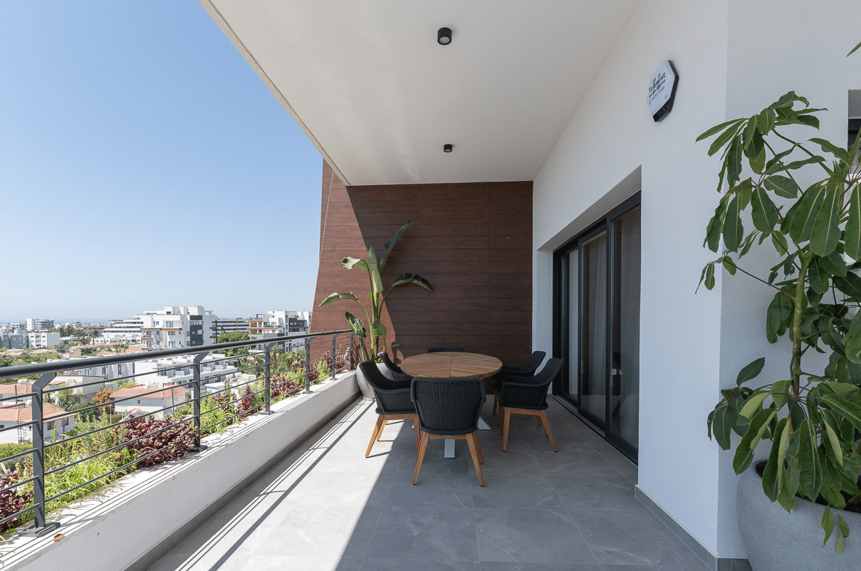 It consists of five floors and 17 spacious apartments. On the 5th floor, available for sale 2 luxurious penthouses. The penthouse is a 3 + 2 bedroom residence with a roof garden of 80 m2 where the residents can enjoy their BBQ area and the jacuzzi while looking at Limassol’s coastline.   This penthouse comes complete with underfloor heating, and a VRV cooling system, fully furnished with electrical appliances.  All materials have been carefully chosen by our Interior designer to provide comfort and luxury