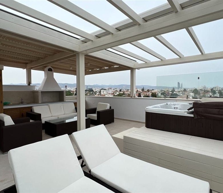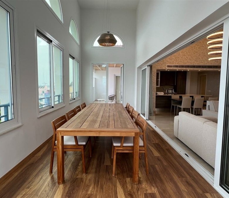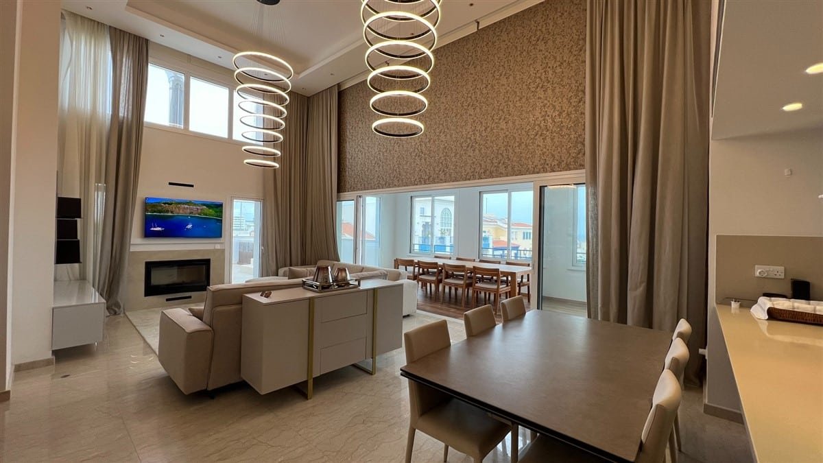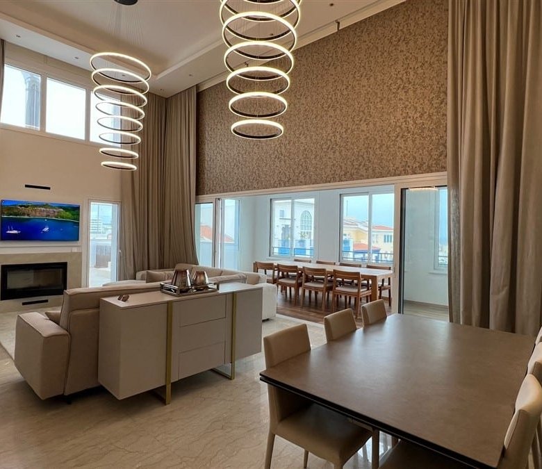A luxury three-bedroom penthouse is located in a private gated residence in Limassol Marina with spectacular sea views, landscaped garden and city, walking distance to the beach, and all kinds of amenities.