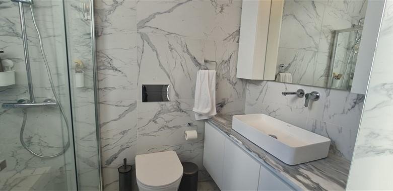 The apartment comprises a living room, a kitchen, a master bedroom with an en-suite bathroom, two bedrooms and a family bathroom. On the outside there is a swimming pool and a shower/wc.
