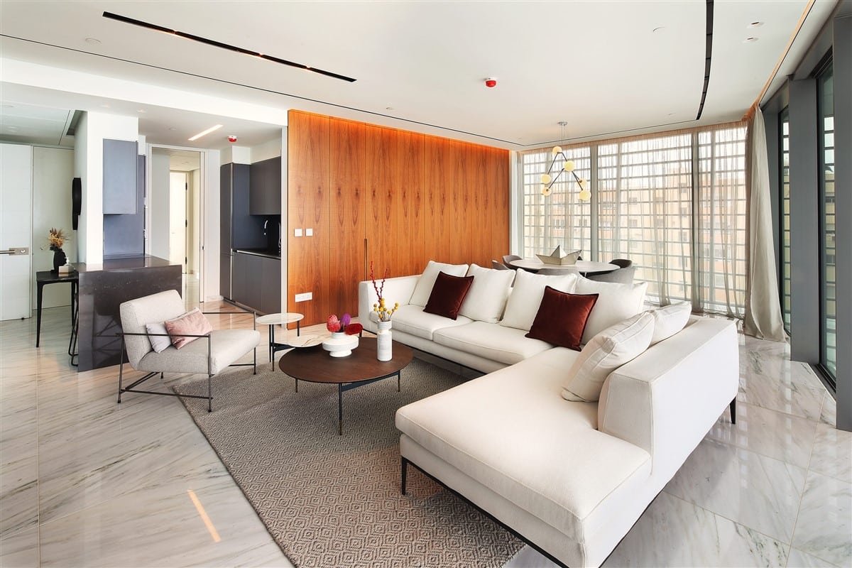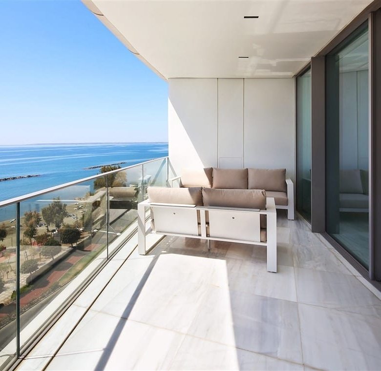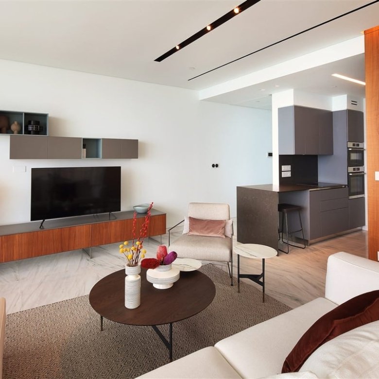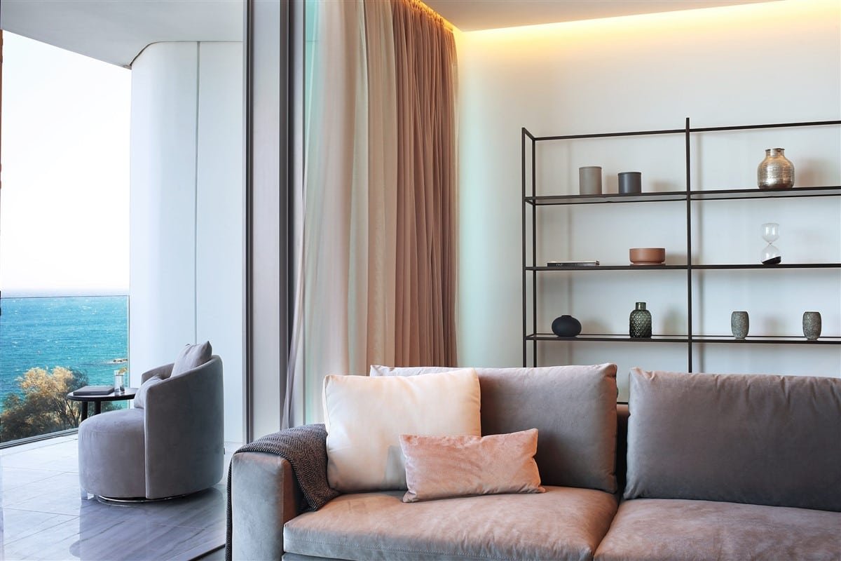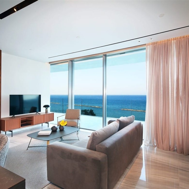 This luxurious two-bedroom apartment seamlessly blends modern technology with sophisticated design. Located beachfront in the Neapolis area of Limassol, it is close to all essential amenities. Quality is evident throughout, from the Italian-designed kitchen with Miele appliances to the elegant wood and stone feature walls.