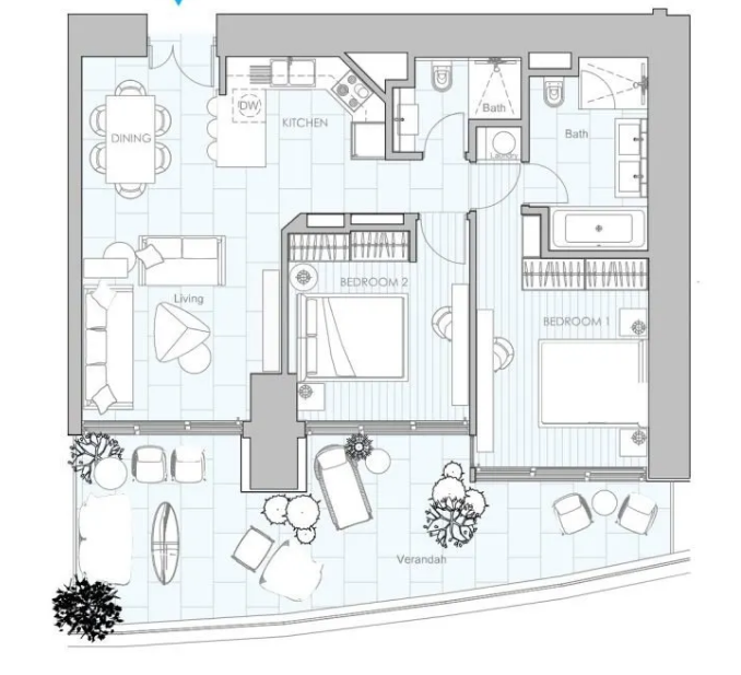 The project features a luxury spa, beautifully landscaped gardens, a children’s playground, underground parking, an impressive 50-meter infinity pool, as well as dedicated kids’ pools. Additional amenities include a sea-facing gym, a resident’s lobby, a bistro, and 24-hour concierge services. The apartment itself is stylishly designed and finished with materials and interiors created by renowned designers.