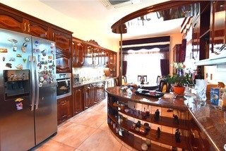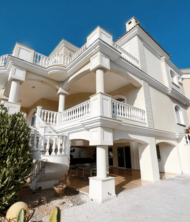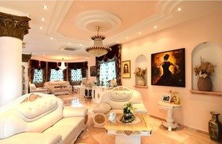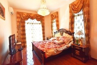 The stunning villa consists of three levels. In the basement there is a separate kitchen, a sauna room and a maid’s room. The ground floor comprises spacious living rooms and dining room, a big kitchen and bathroom and the first floor has four bedrooms and a study room, four bathrooms and a sauna.