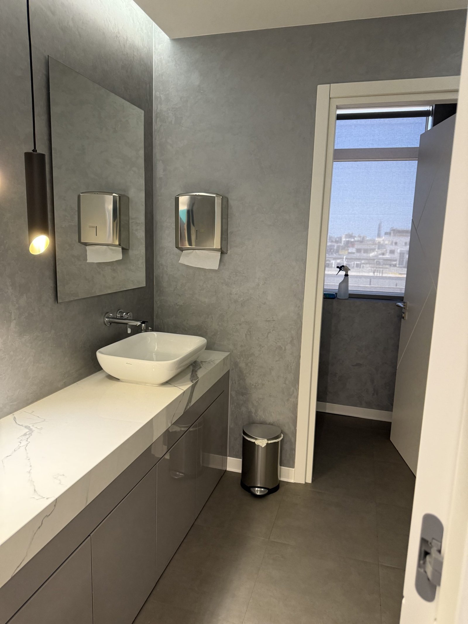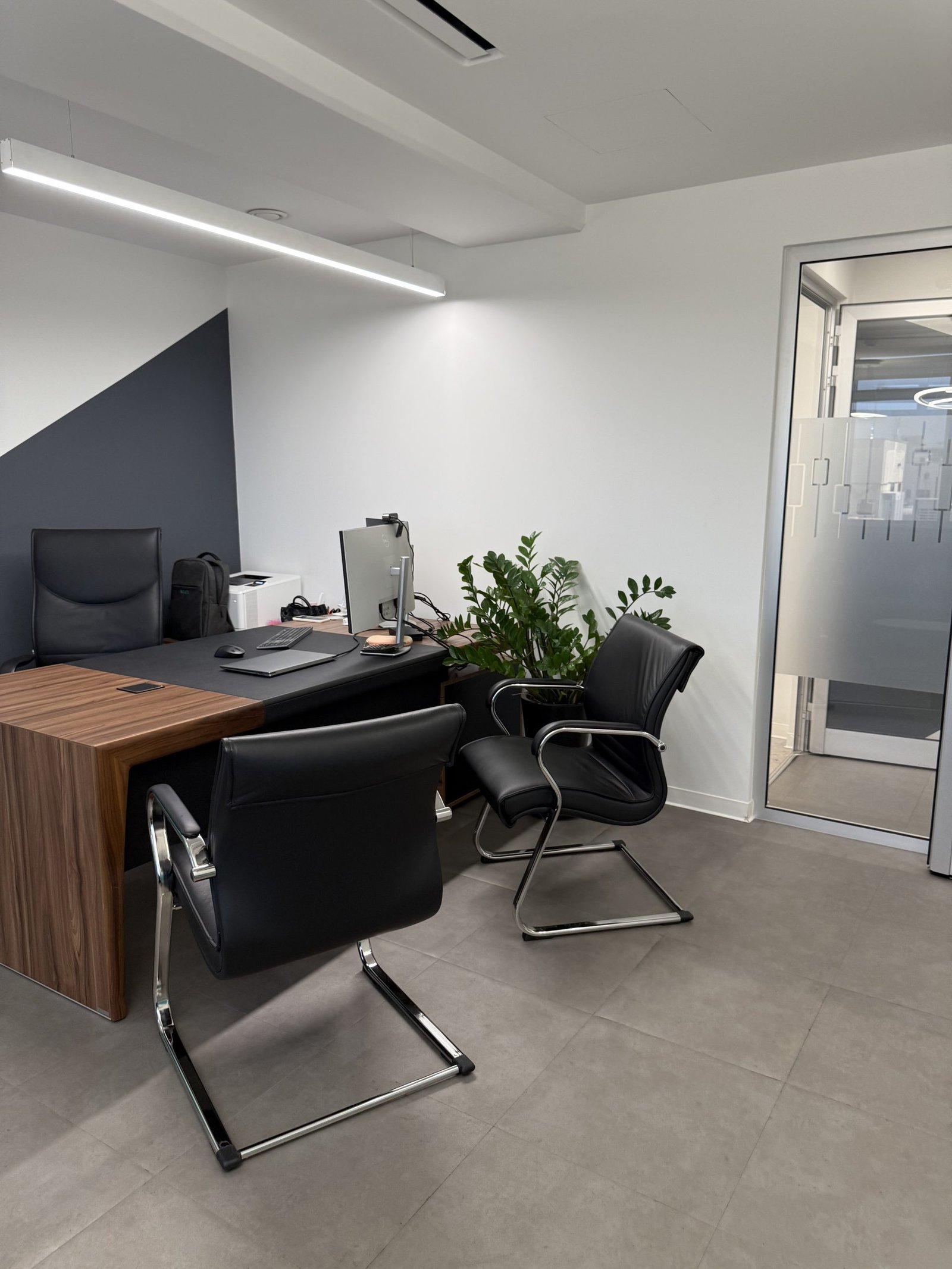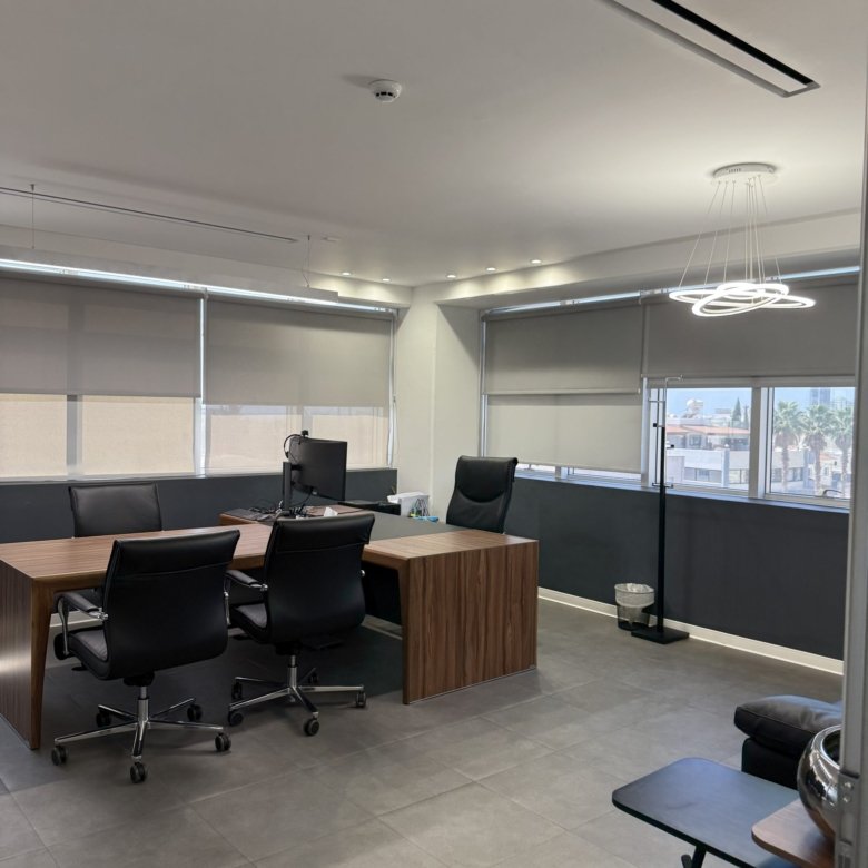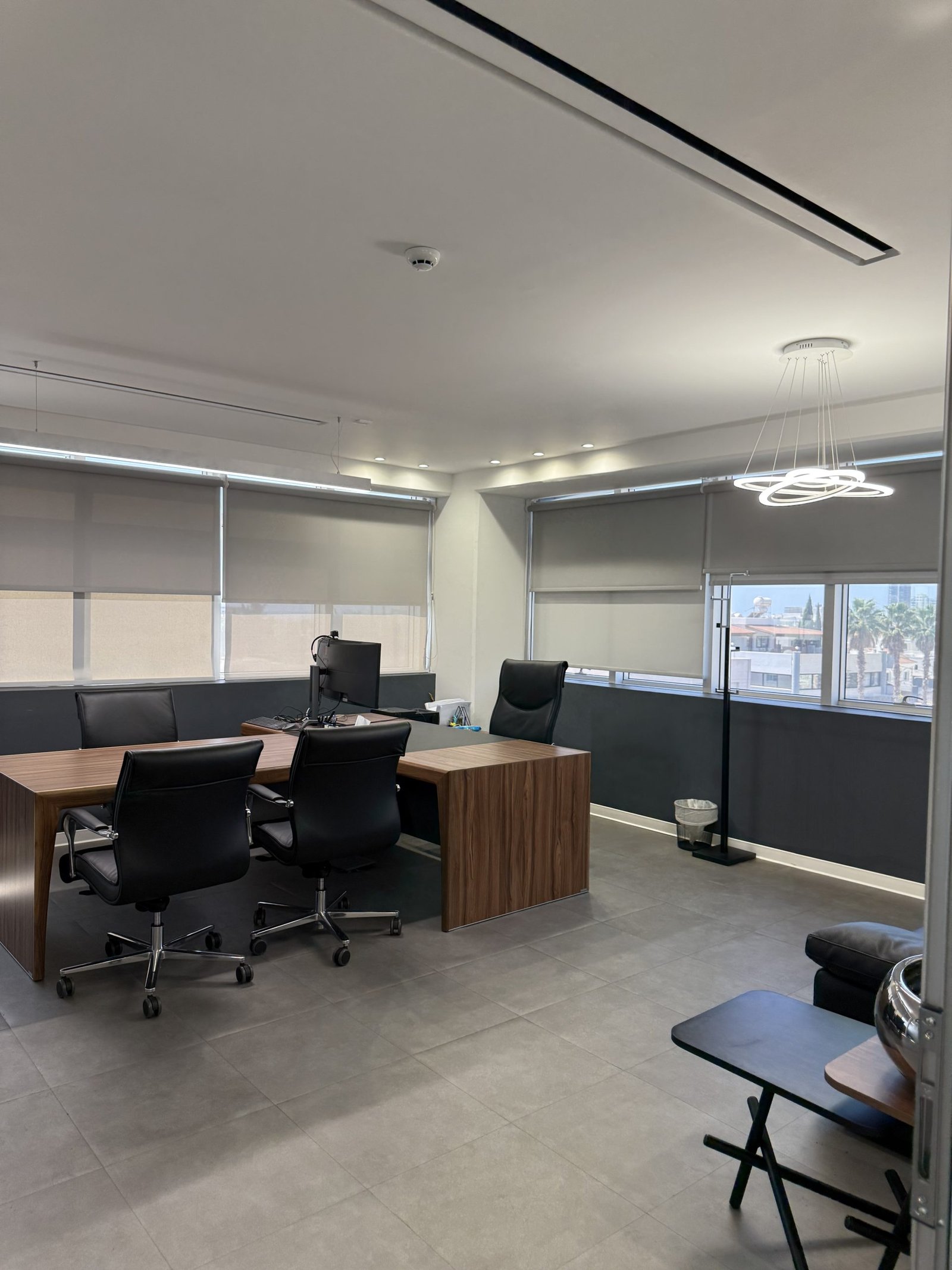 This spacious 700 m² office is located on the 2nd floor in Agios Athanasios, Limassol, close to all amenities, the highway, the city center, and the sea, making it ideal for business needs. The office is fully air-conditioned with a modern VRV system and features raised floors, suspended ceilings, and fitted vertical blinds.