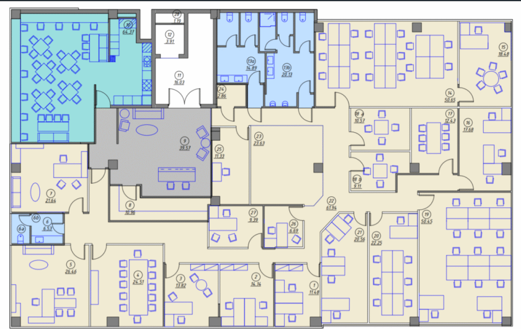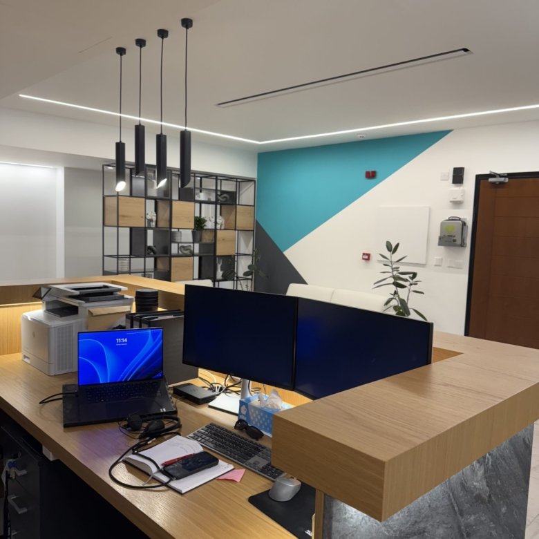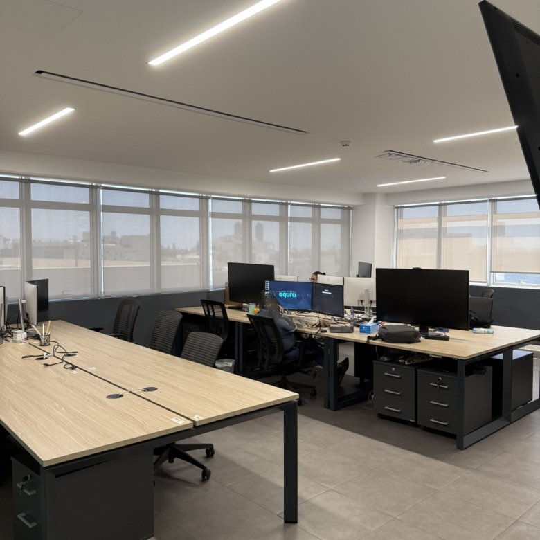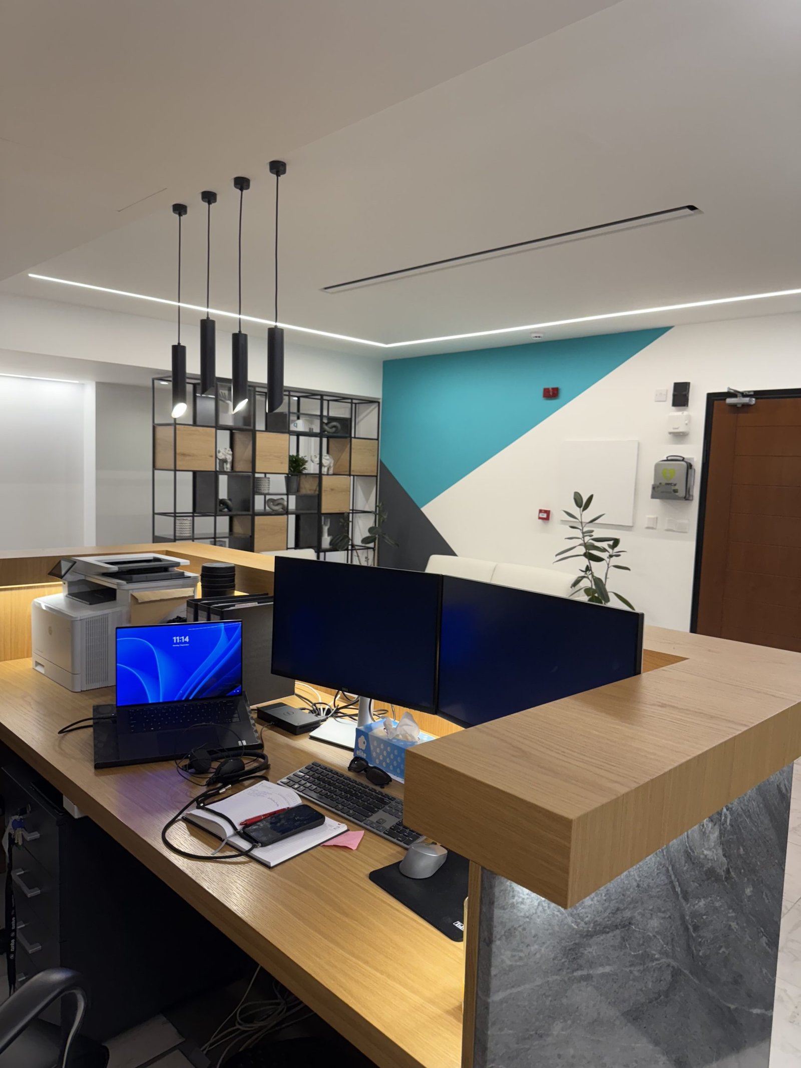 This spacious 700 m² office is located on the 2nd floor in Agios Athanasios, Limassol, close to all amenities, the highway, the city center, and the sea, making it ideal for business needs. The office is fully air-conditioned with a modern VRV system and features raised floors, suspended ceilings, and fitted vertical blinds.