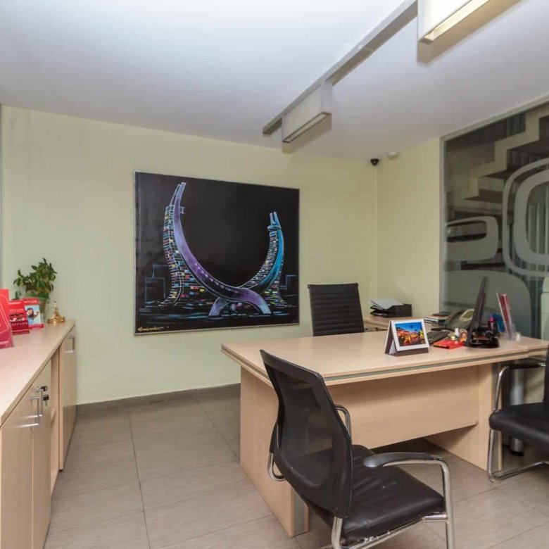 The office includes a stylish glass terrace, a well-equipped kitchen for staff, and convenient parking with both complex parking and two private spaces. Designed to comfortably accommodate a team of 10.