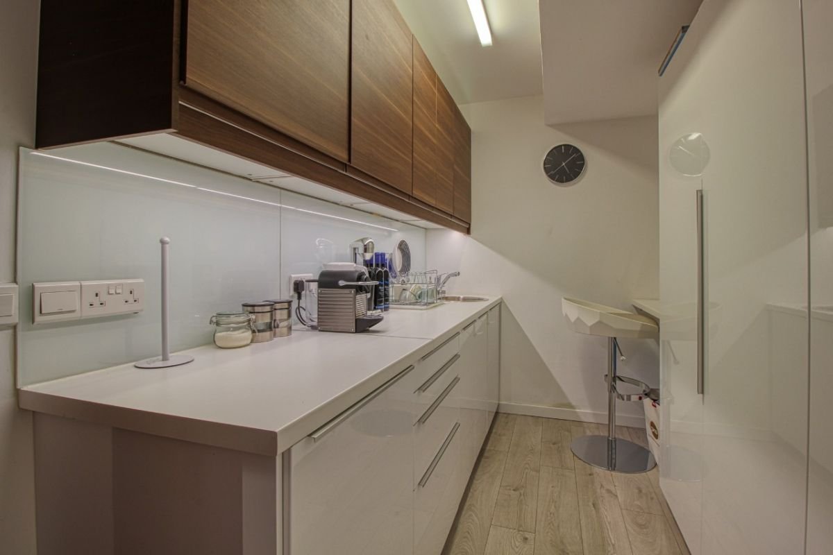 The first floor includes one private office, open space for four desks and staff WC. Has air conditioning system, bio fireplace. Excellent location within easy reach to all city amenities.