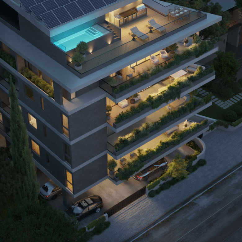 This exclusive residential project is located in the vibrant heart of Katholiki, Limassol, just steps from banks, shops, cafes, schools, and universities. The four-story building comprises 16 meticulously designed apartments, predominantly facing southwest to provide abundant natural sunlight and views of surrounding green landscapes. Each apartment is built to the highest standards, featuring high ceilings, hidden LED lighting, ceiling-mounted A/C units, and layouts designed for day-to-day convenience.