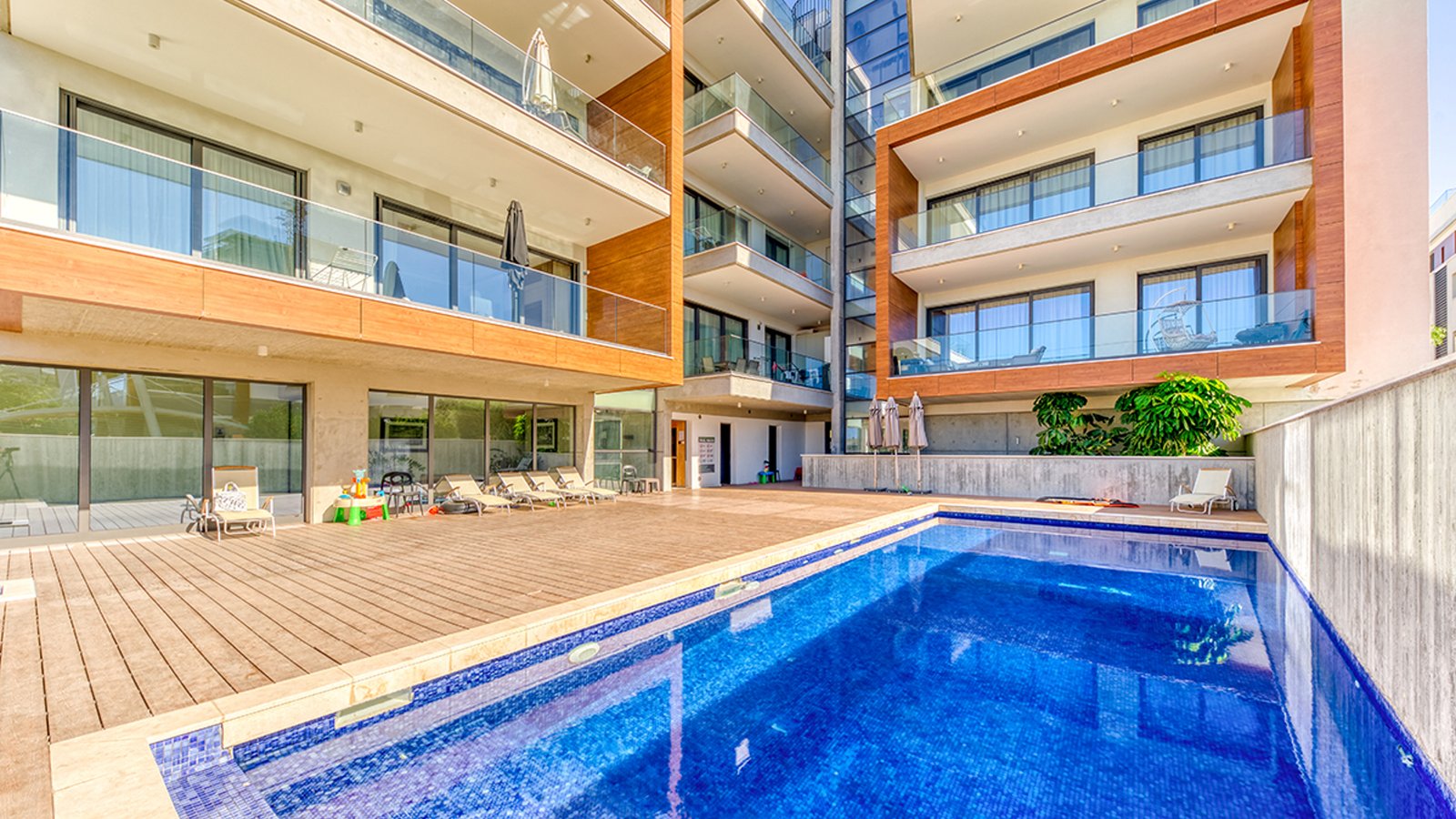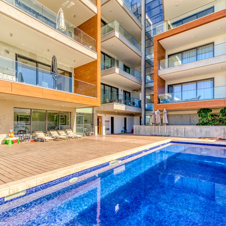 This 1-bedroom apartment is located in the Potamos Germasogeia area, Limassol, close to all amenities such as shops, supermarkets, parks, and within walking distance to the sea. It is part of a modern complex that includes a communal swimming pool, gym, and sauna.