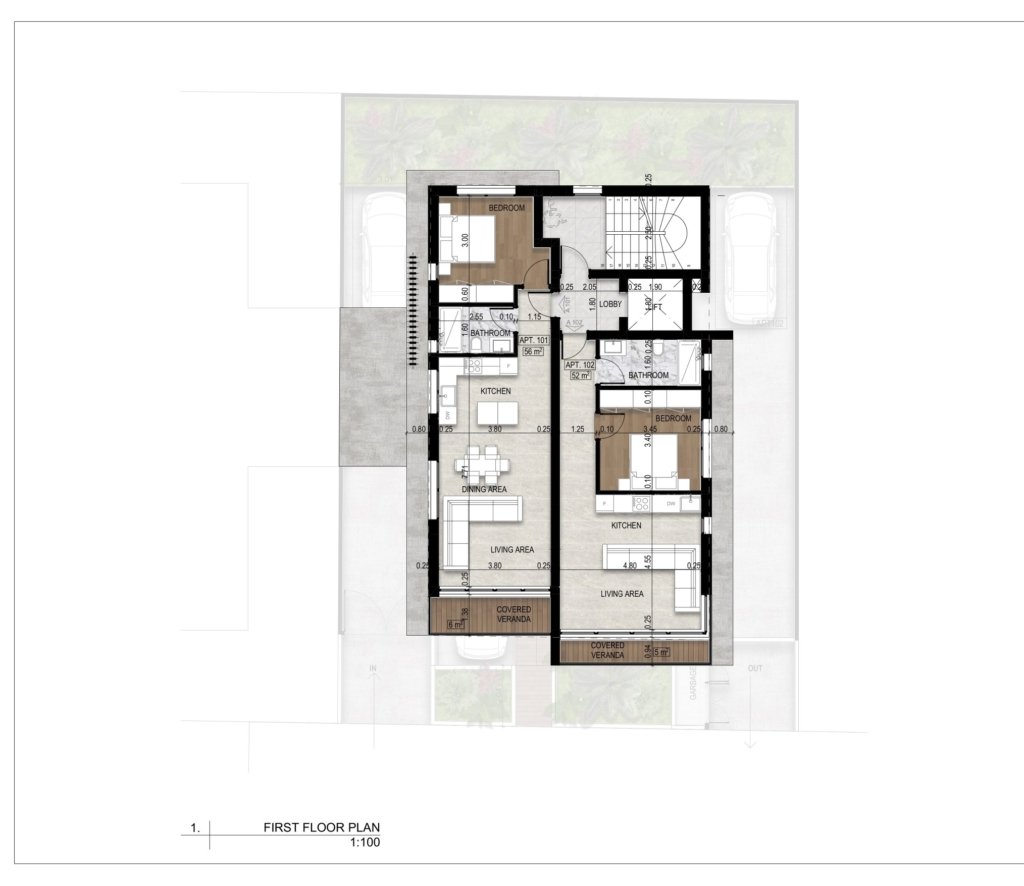 This modern project is located in Mesa Geitonia, Limassol, close to all amenities and just steps from schools, shops, restaurants, and everyday services. The elegant three-storey building features only five apartments: four stylish one-bedroom units and an exclusive three-bedroom penthouse.