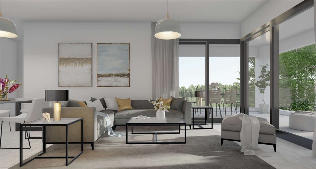 The modern apartments consist of two 4-storey buildings, one with four apartments on each floor and the other with three apartments on each floor. From the garden and the lounge area on the roof of the apartment you can enjoy breathtaking views of the city.