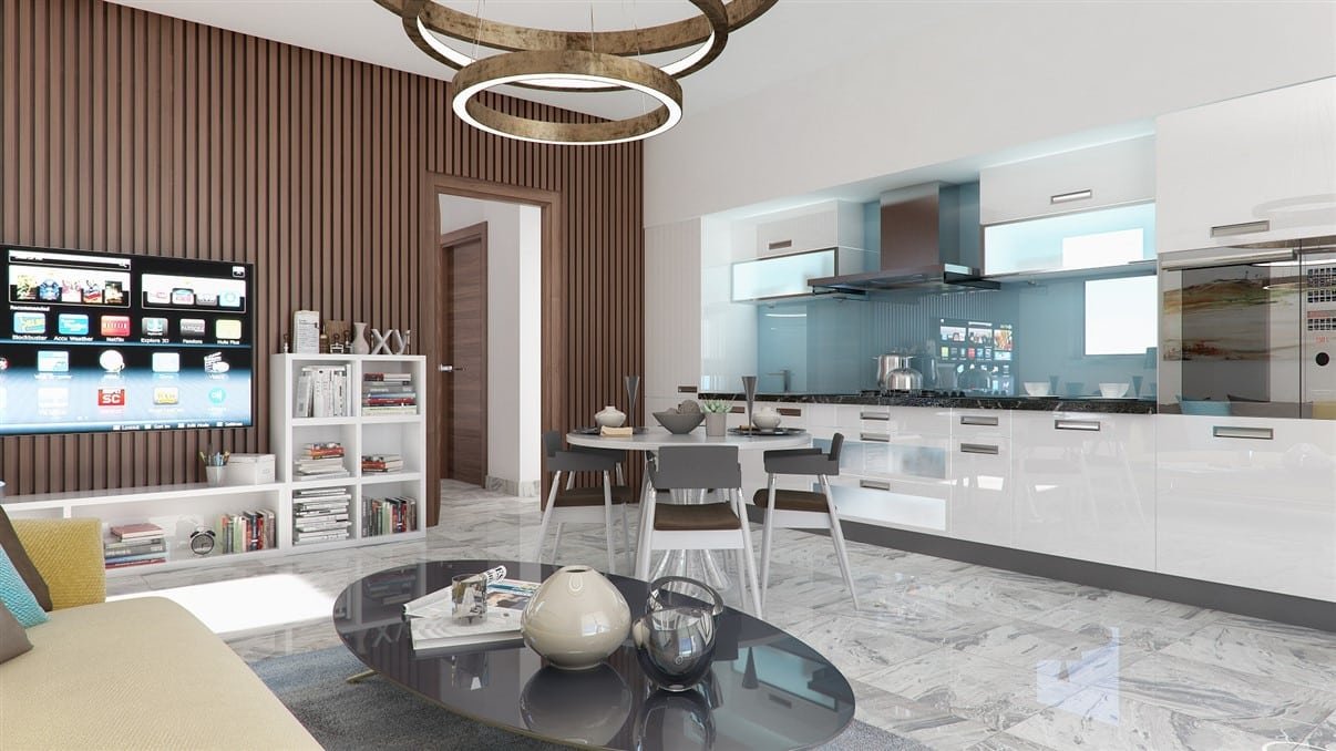 The thoughtfully crafted interiors of each suite harmoniously combine functionality and aesthetics. The open-plan design of the kitchen, living room, and dining area creates a seamless flow, enhancing the sense of space and connectivity. Large verandas extend the living areas outdoors, providing a perfect spot to enjoy the Mediterranean climate.