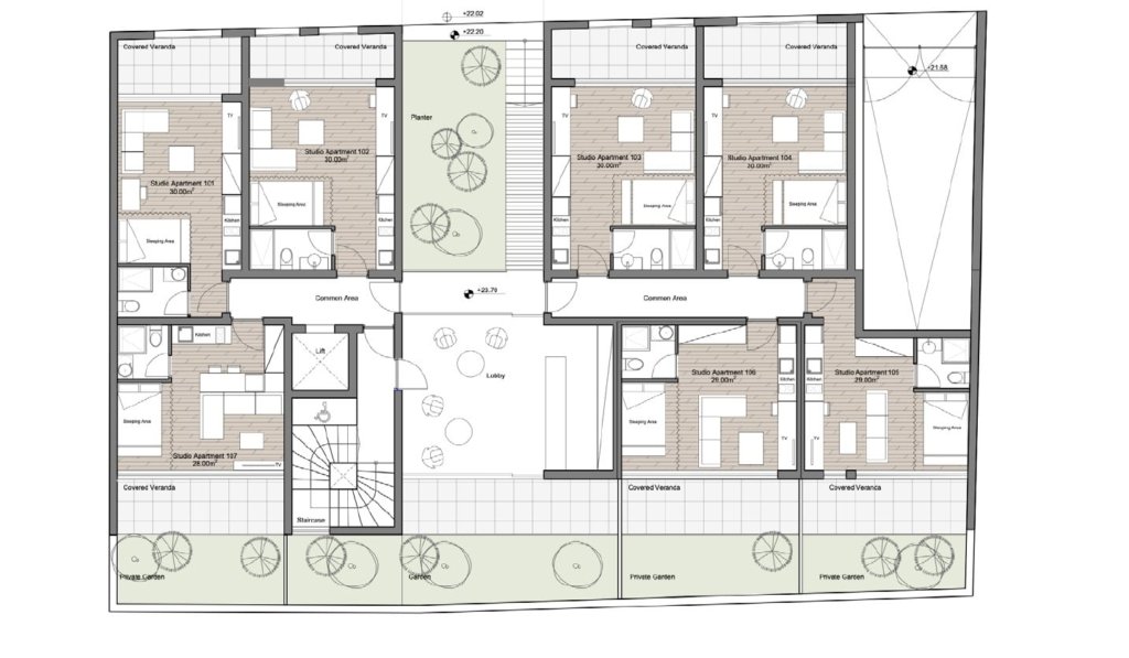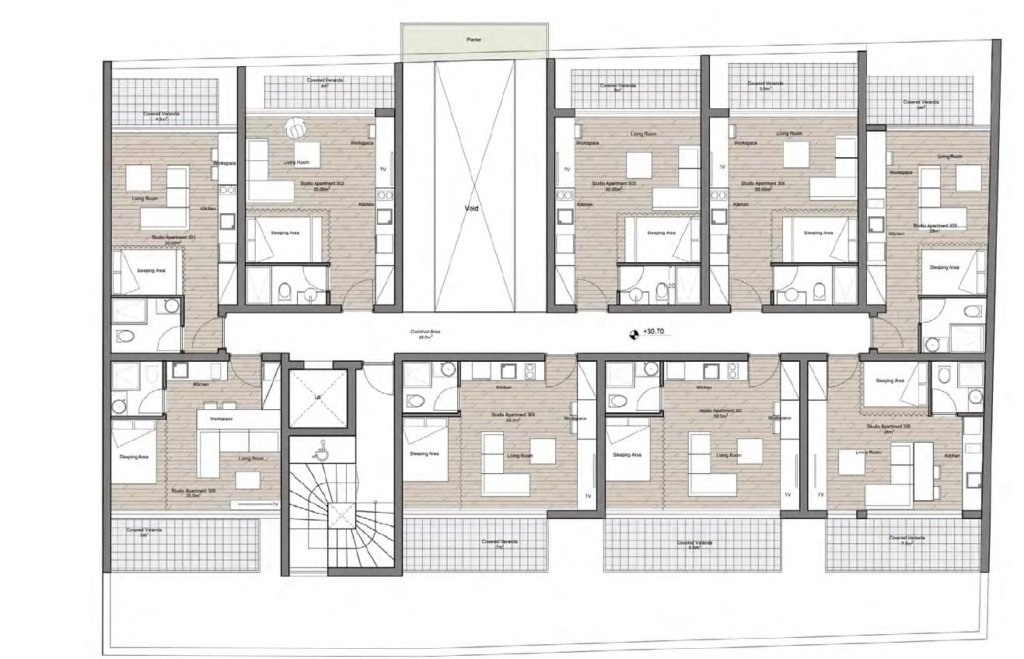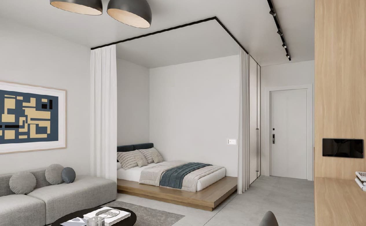 This new project of 25 boutique studios nestled in the heart of Limassol’s historical center. The studio consists of a kitchen-living room area and bedrooms area.