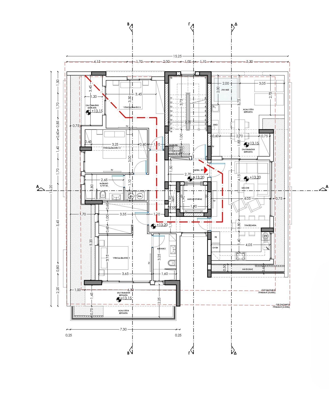 Uncovered veranda: 21 m2