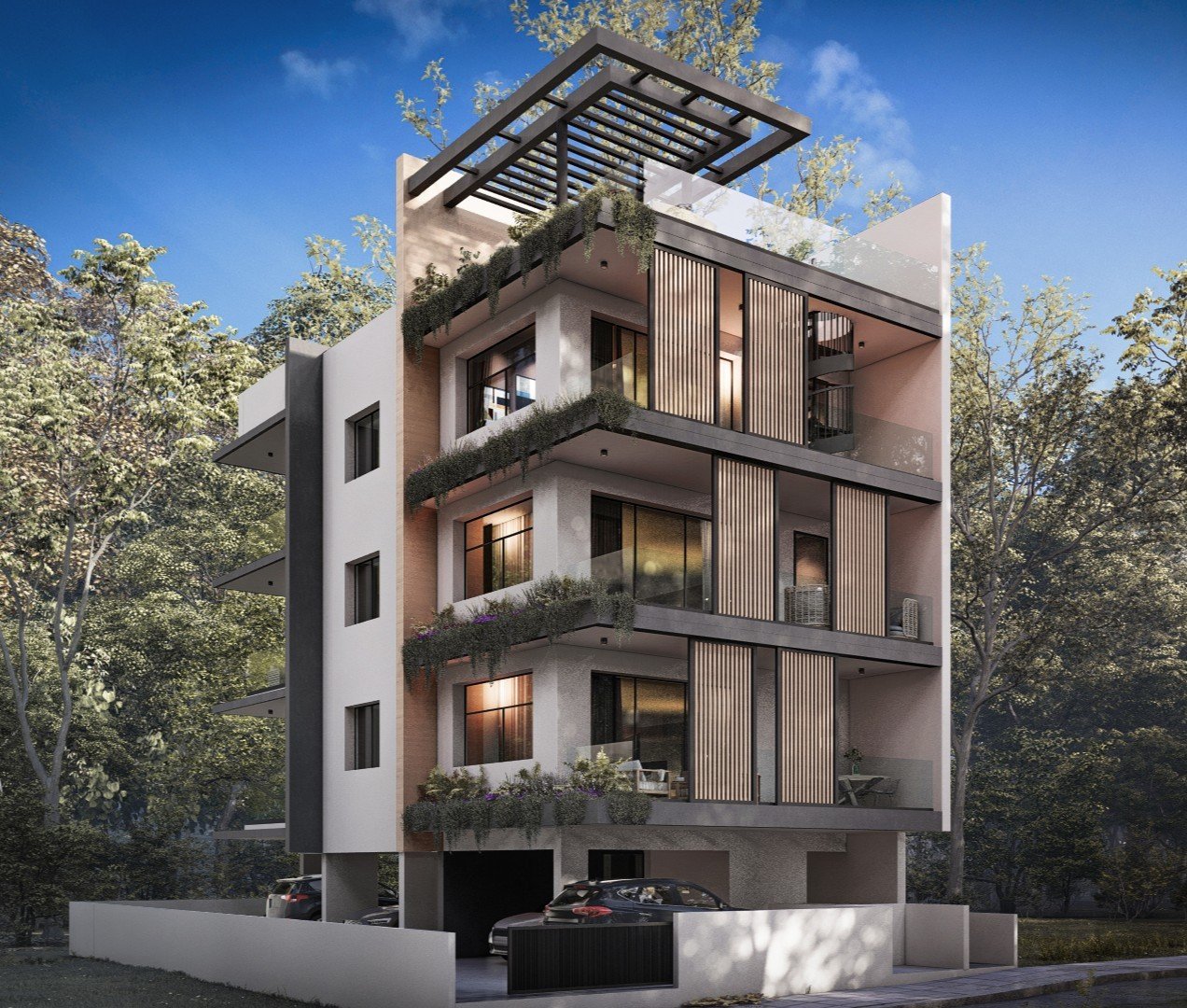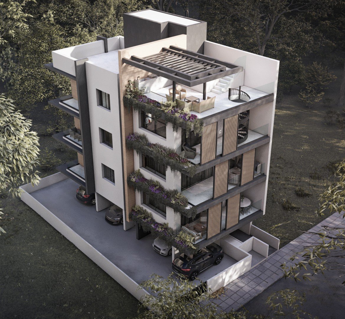 This modern project is located in Mesa Geitonia, Limassol, close to all amenities including shops, schools, cafes, and supermarkets. The apartments are spacious and consist of 2 bedrooms, 2 bathrooms, and a covered veranda.