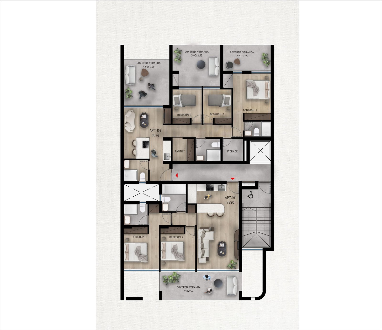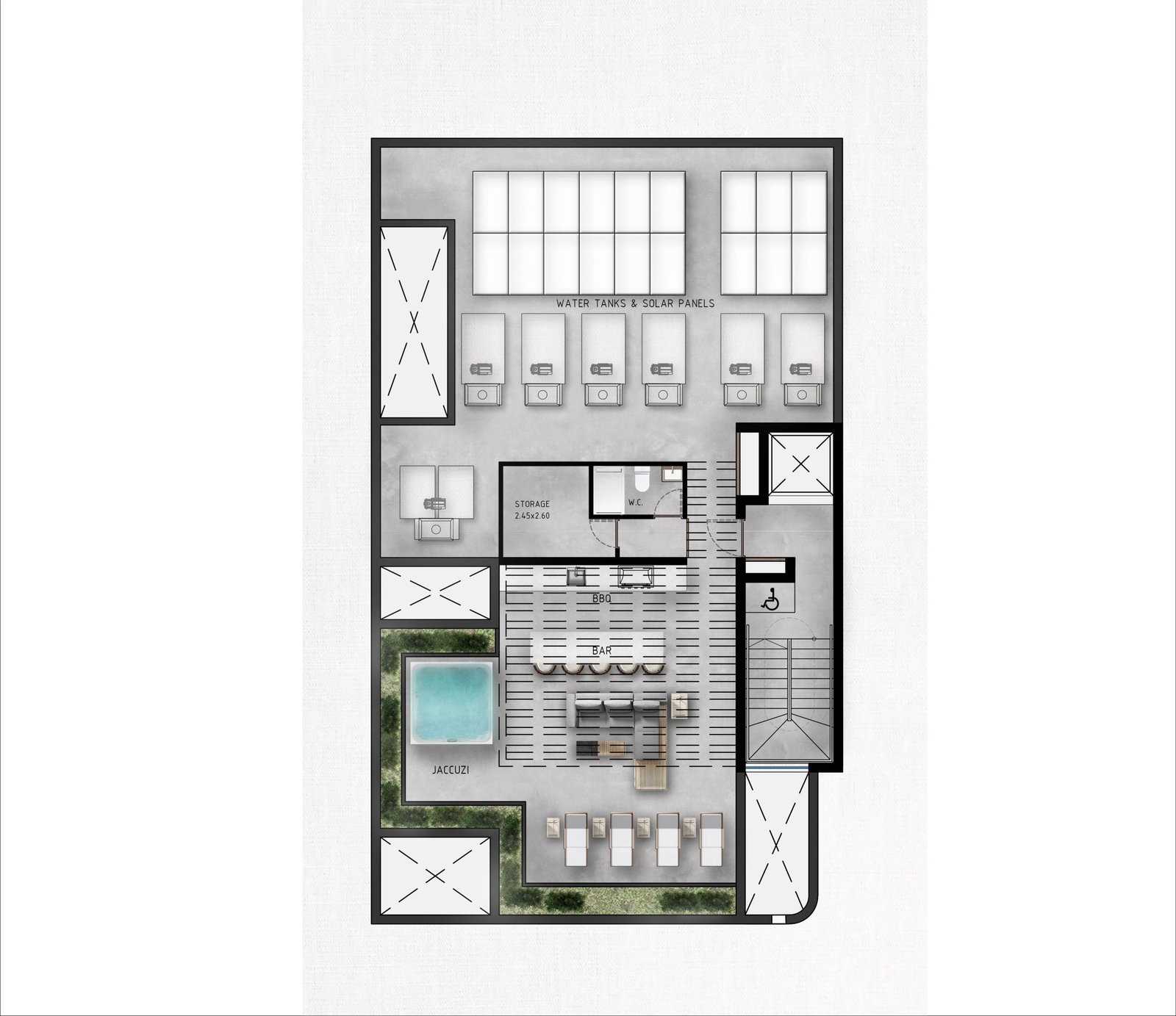 This modern boutique development is located in the Katholiki area of Limassol city centre, within walking distance to all amenities, cafés, shops, and restaurants. The apartments feature a modern design and are built with high-end quality materials. Each apartment consists of 2 bedrooms, 2 bathrooms, and an open-plan kitchen and living area. The building offers a communal rooftop with BBQ area, swimming pool, and jacuzzi.