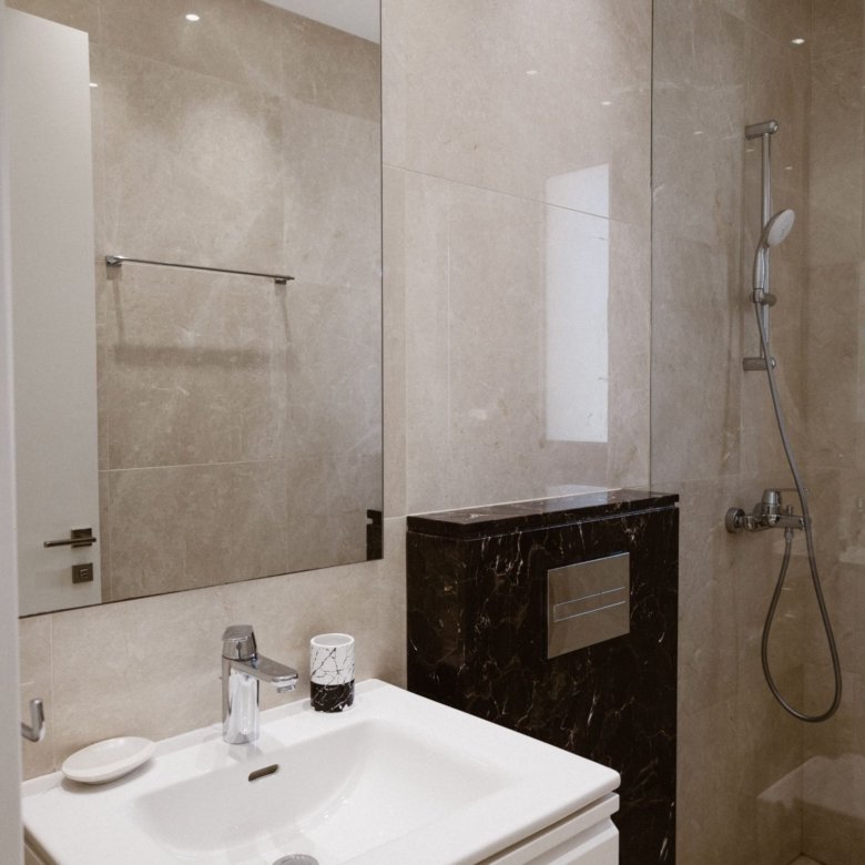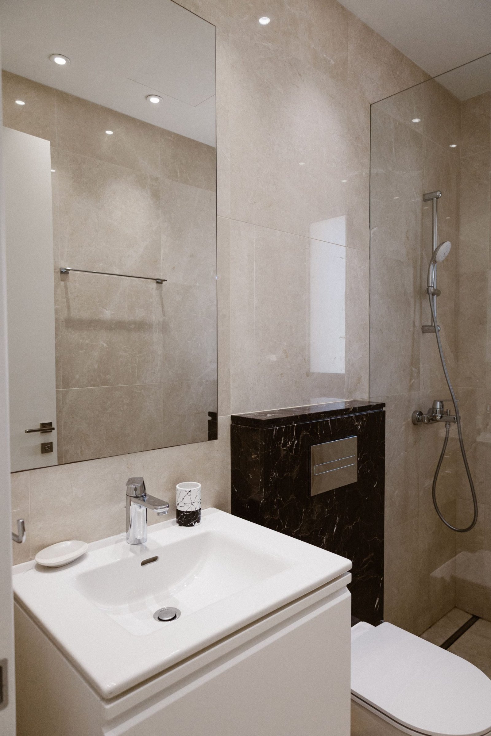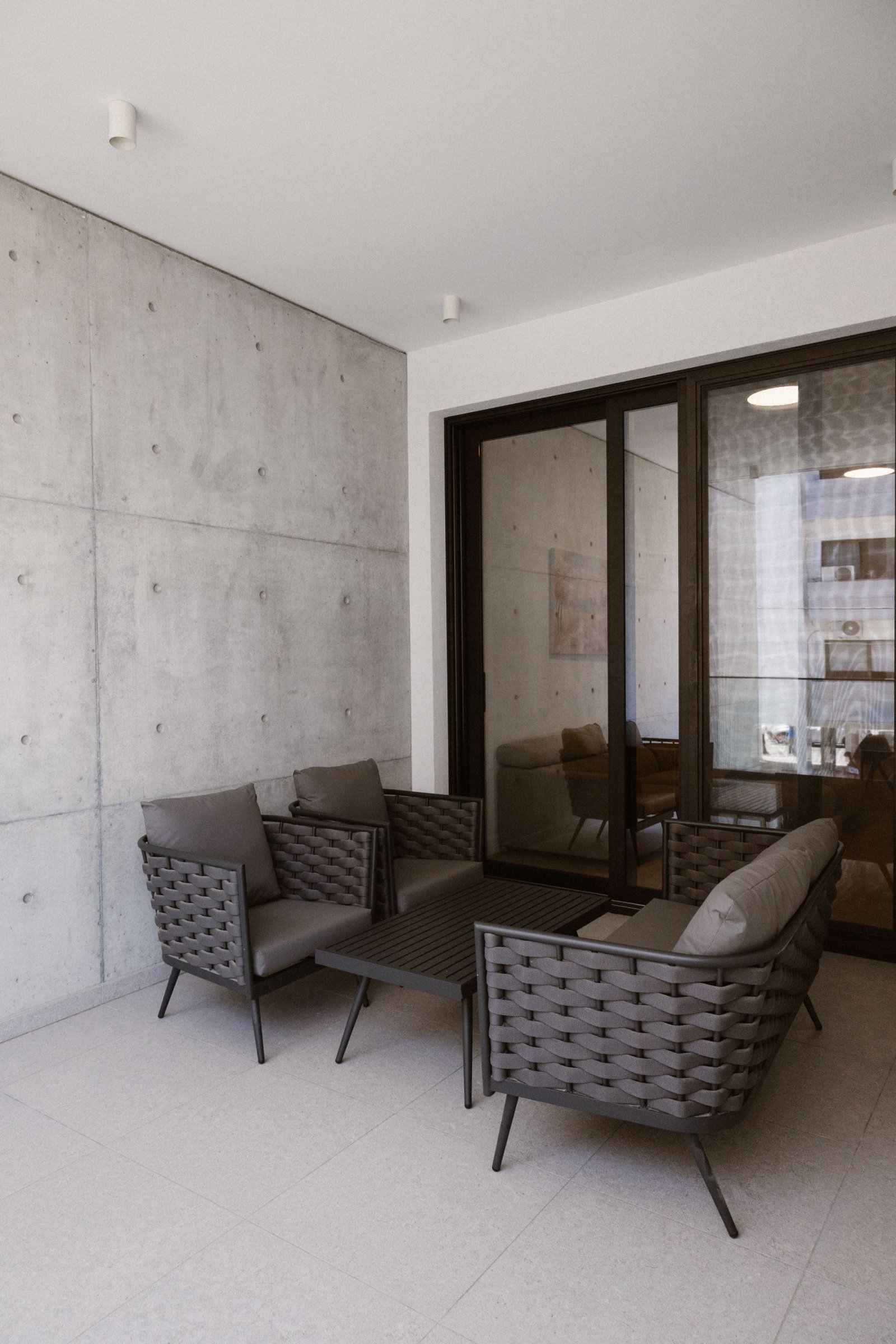 The apartment features two bedrooms, two bathrooms, and an open-plan kitchen and living area. Residents of the complex also enjoy access to a rooftop swimming pool and a shared BBQ area.
