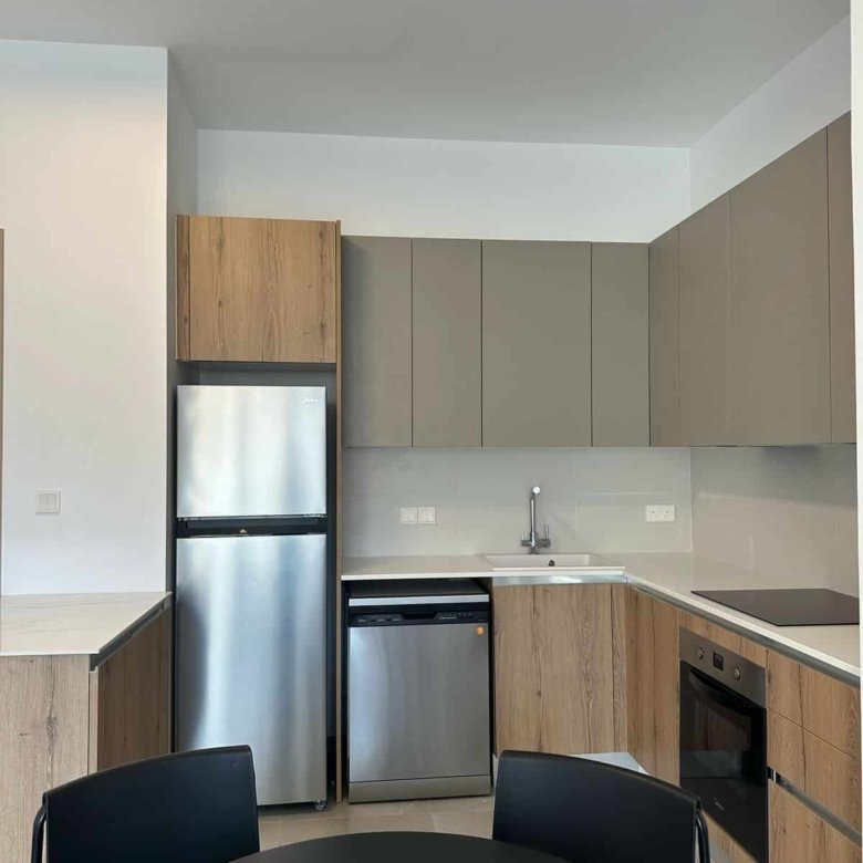 This modern two-bedroom apartment in Zakaki, Limassol, situated near the My Mall and Casino, is part of a newly constructed residential complex. It features an open-plan living area seamlessly integrated with the kitchen, creating a spacious and contemporary atmosphere.