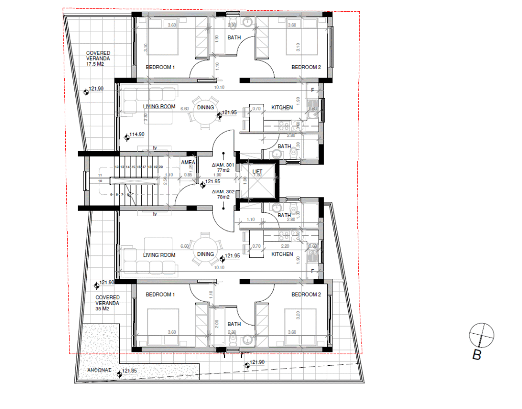 The apartment features modern design and high-quality finishes. It consists of 2 bedrooms, 2 bathrooms, and a covered veranda, offering a comfortable and stylish living space.