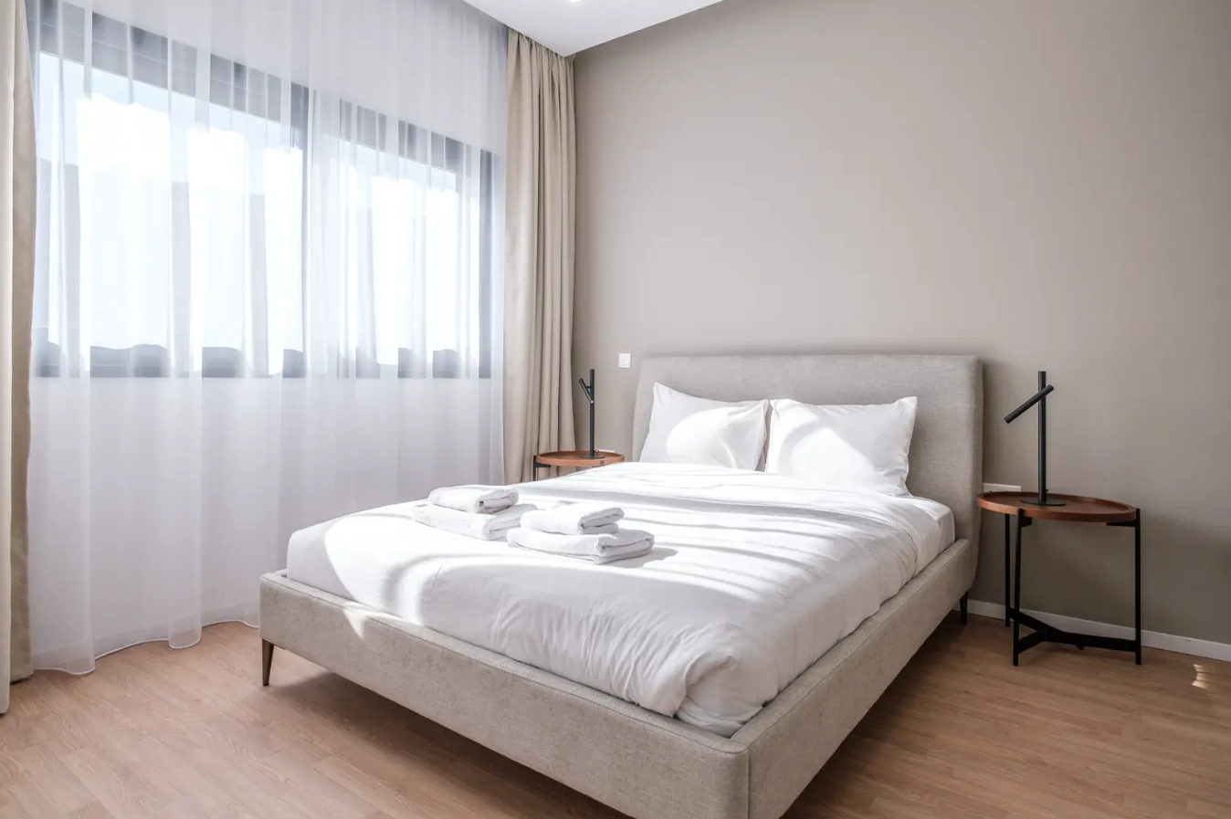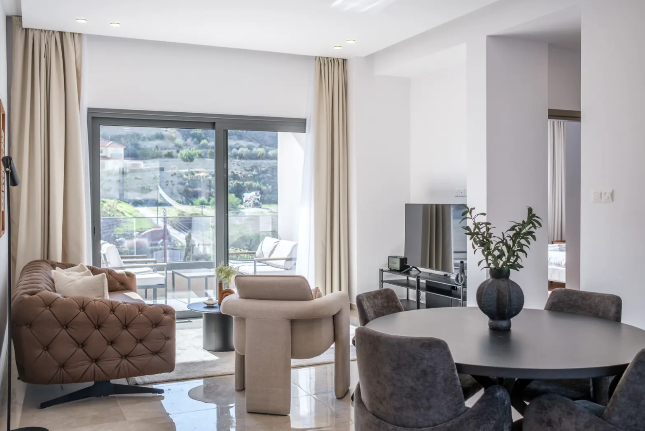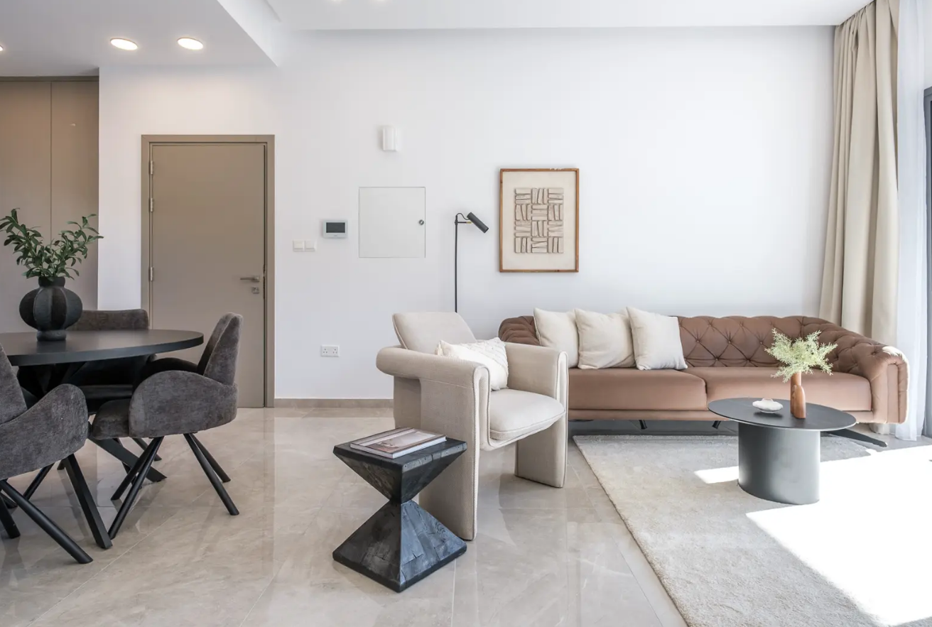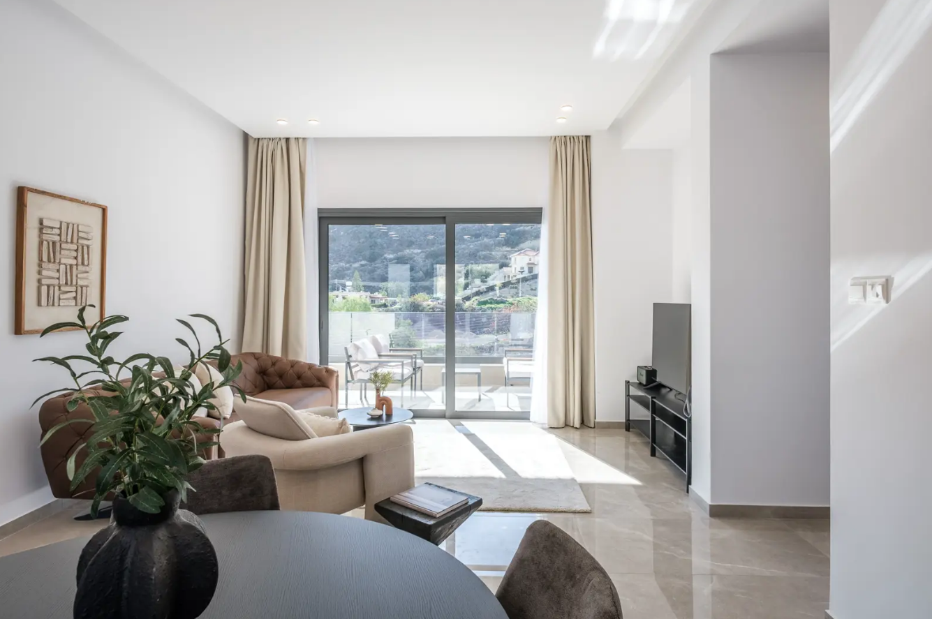 This modern 2-bedroom, 2-bathroom apartment in Germasogeia, Limassol, is conveniently located in a picturesque and quiet area, close to shops, cafes and other amenities. Fully equipped with high-quality appliances and top-tier amenities, it offers bright and comfortable living spaces.