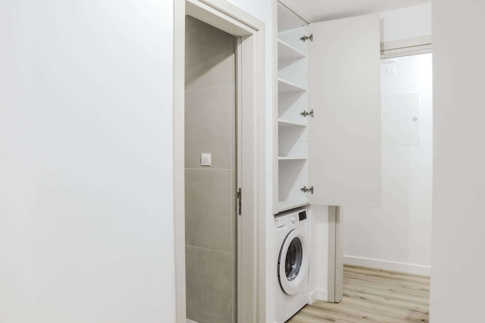 The apartment has an open-plan living and kitchen area, connected to a spacious south-facing veranda. With floor-to-ceiling double-glazed windows, the space is flooded with natural light, creating a bright atmosphere. The property also comes with covered parking, a private storage room, and remote-controlled entry and exit for security and convenience.