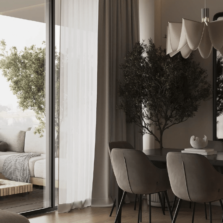 Designed with modern living in mind, the apartments are laid out to maximize floor space and provide tree-top views from the balconies. The bedrooms offer an inviting opportunity to create a cozy and tranquil sleeping space, with natural light and air flowing throughout the rooms for a refreshing atmosphere.