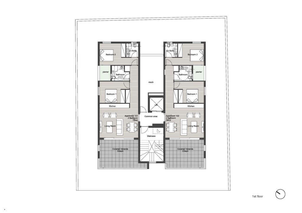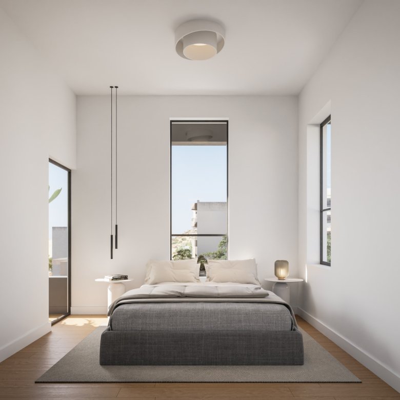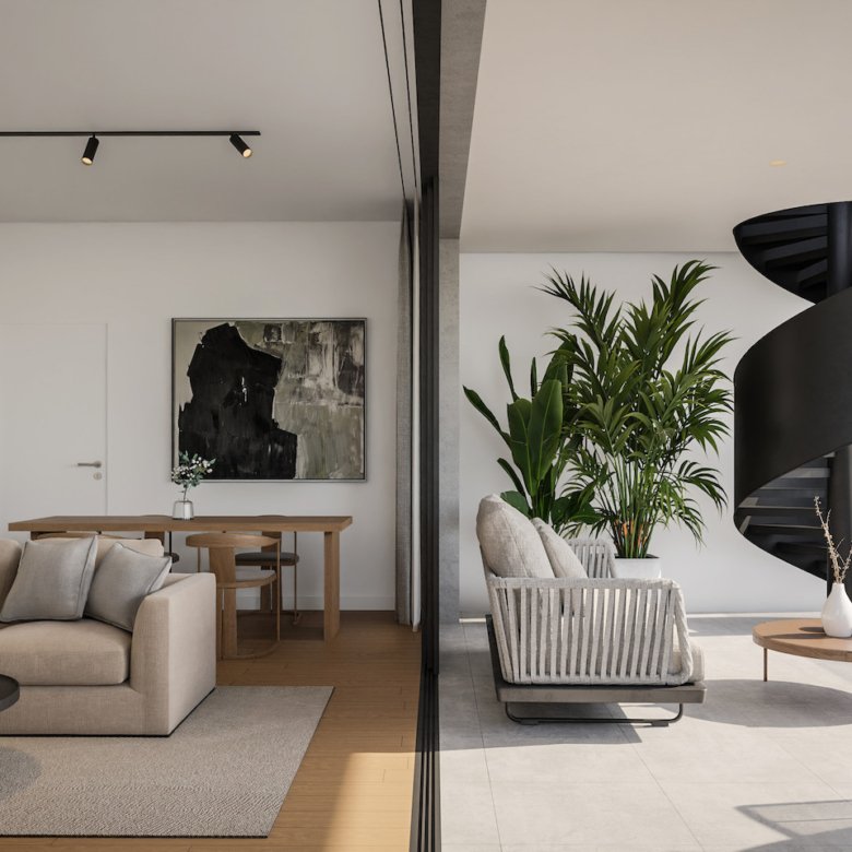 This two-bedroom penthouse is located in a modern project in the Agios Athanasios area of Limassol, close to all amenities and with easy access to the highway. The apartment offers breathtaking city and sea views and features two bedrooms, two bathrooms, an open-plan kitchen and living room, and a private roof garden.
