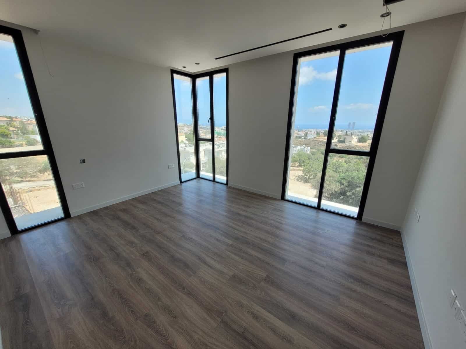 The double-glazed floor-to-ceiling windows throughout the property provide stunning panoramic views of the sea and the hills overlooking green gardens with beautiful trees and flowers.
