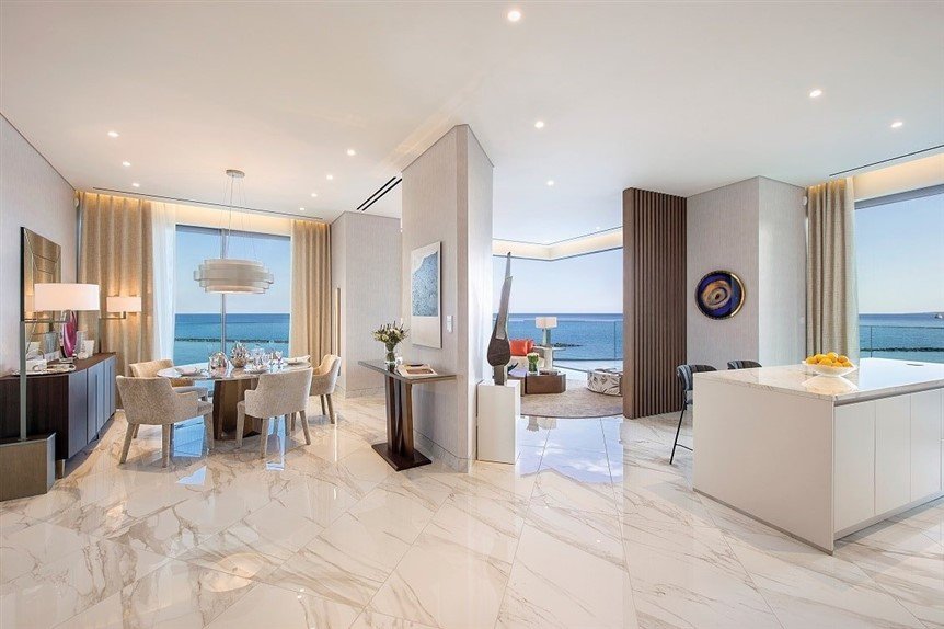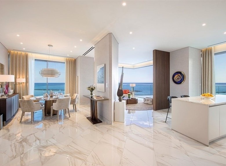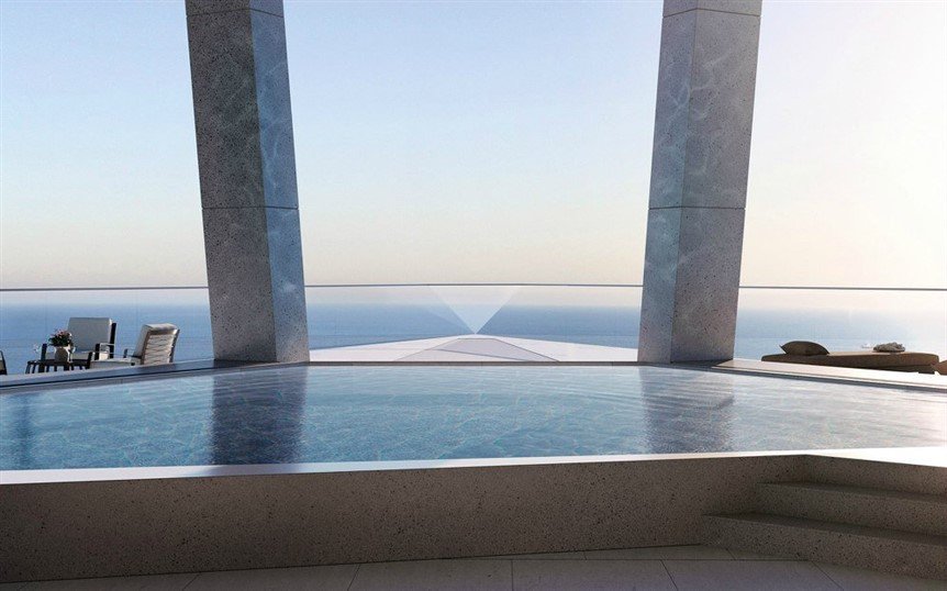 This is a new luxury development in Cyprus, located at the most premium seafront plot in Limassol, the go-to city of the Mediterranean. The project consists of three towers: The West Tower is of mixed use with 15 levels for commercial offices, 19 levels of 69 residential units and 2 levels of spa and gym facilities. The East and North Towers are exclusively residential with 31 levels for the East Tower with 127 units and the North Tower consisting of 34 levels with 111 units.