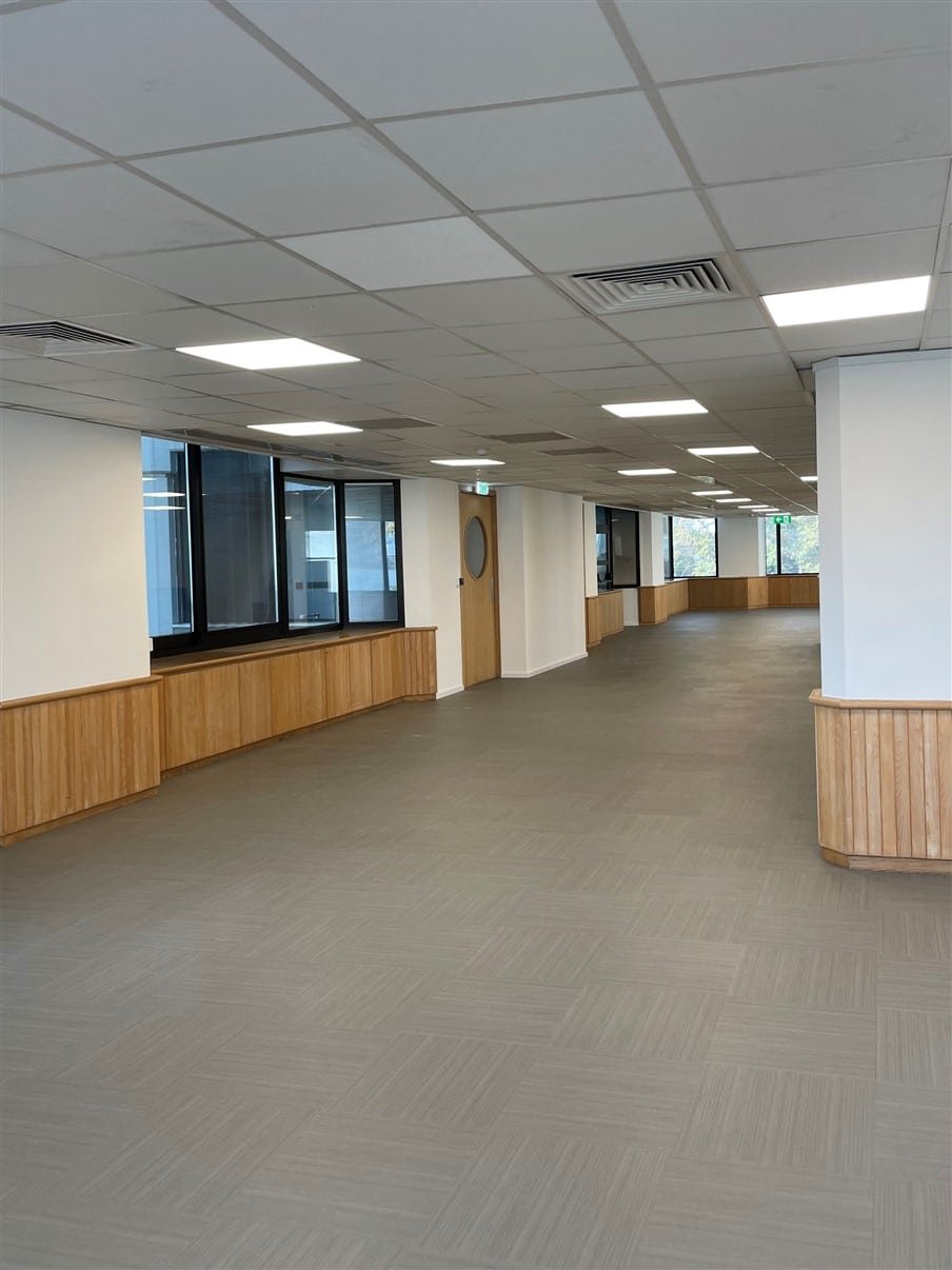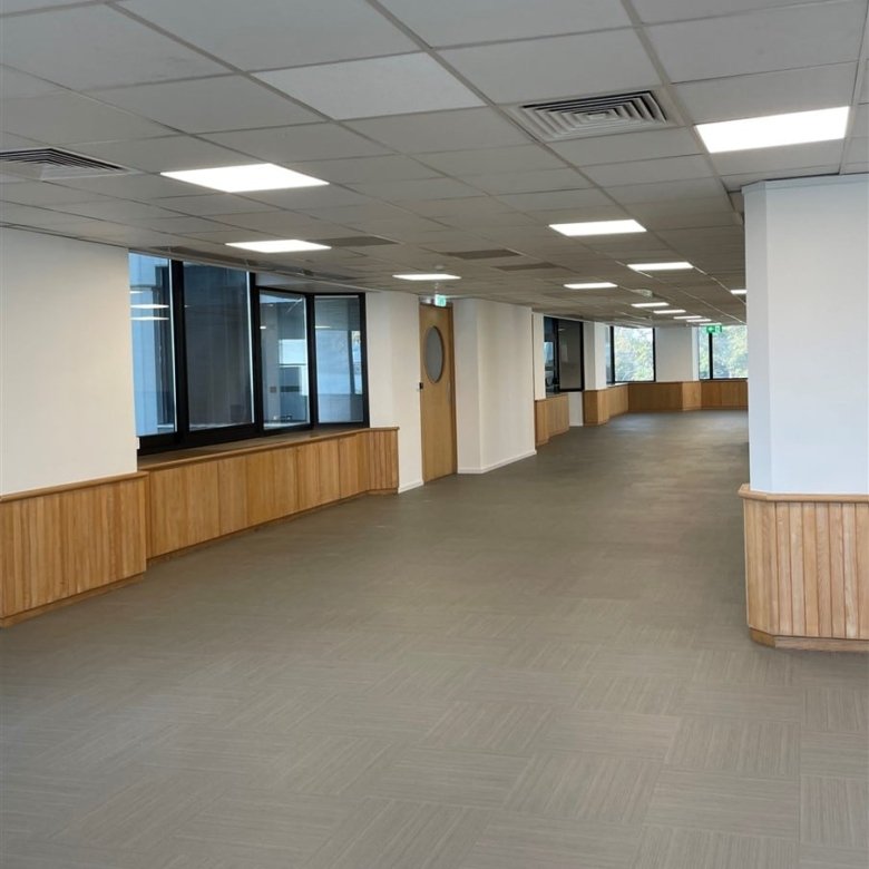 It is equipped with an air conditioning system, a kitchenette, a raised floor, a false ceiling, and an access control system. The office comes with six parking spaces, making it convenient for employees and clients.
