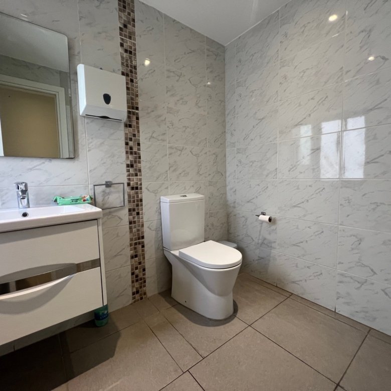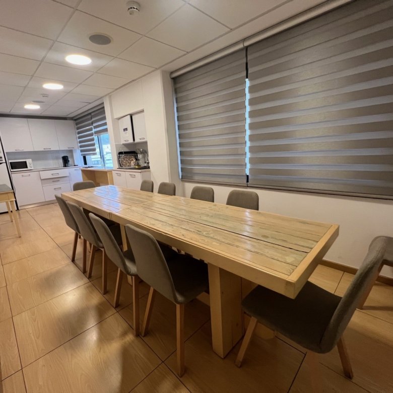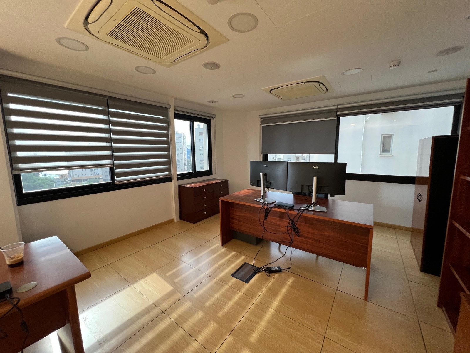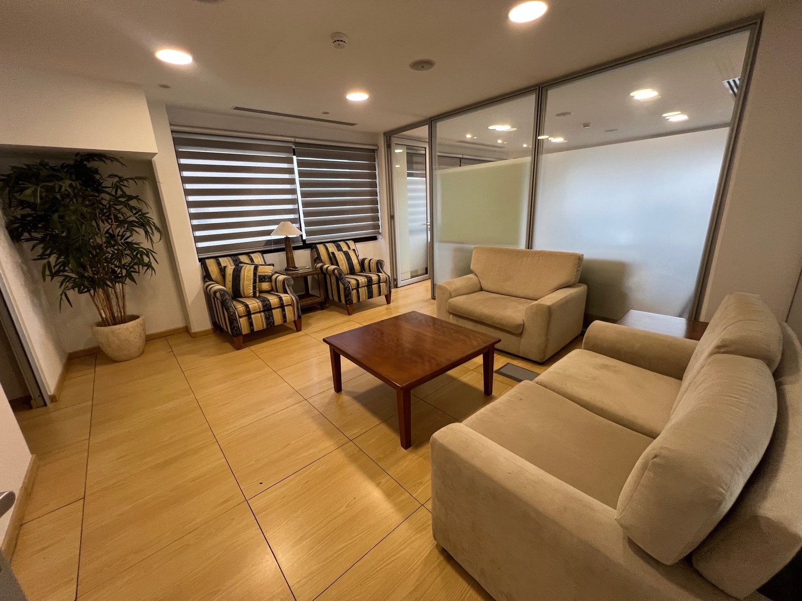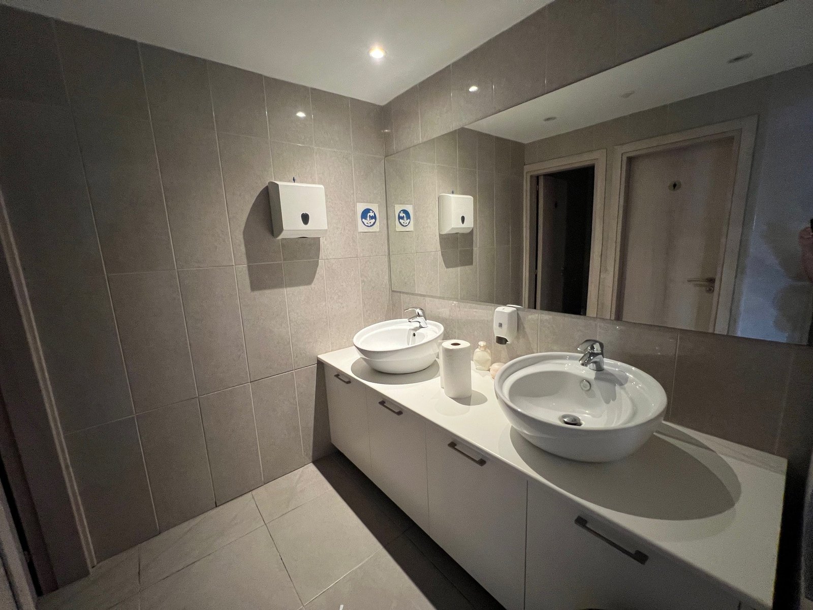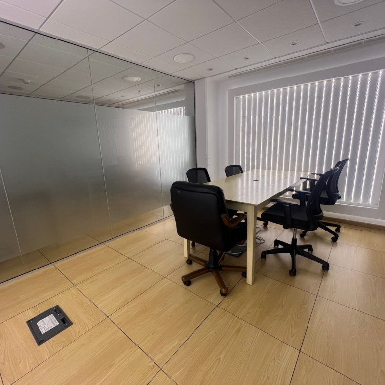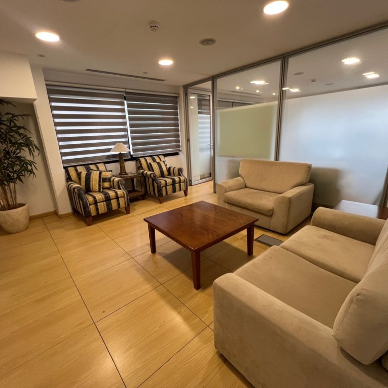 This spacious office space is located in a modern business center in the Neapolis area of Limassol, offering sea, city, and mountain views. The total floor area is 527 m², consisting of two offices. The first office includes a reception area, a large conference room, a smaller meeting room, six separate offices, a server room, storage space, a kitchen with a dining area, and two WCs. The second office features a large open-plan workspace, four separate offices, an executive office with an en-suite WC and shower, a kitchenette, storage space, a server room, and two WCs. Both offices are offered unfurnished and are equipped with central air conditioning with climate control, raised floors, double-glazed thermal windows, LED lighting, high-speed internet with structured cabling, a video intercom system, access control, and security and fire alarm systems. The building includes a main entrance lobby and five allocated parking spaces.