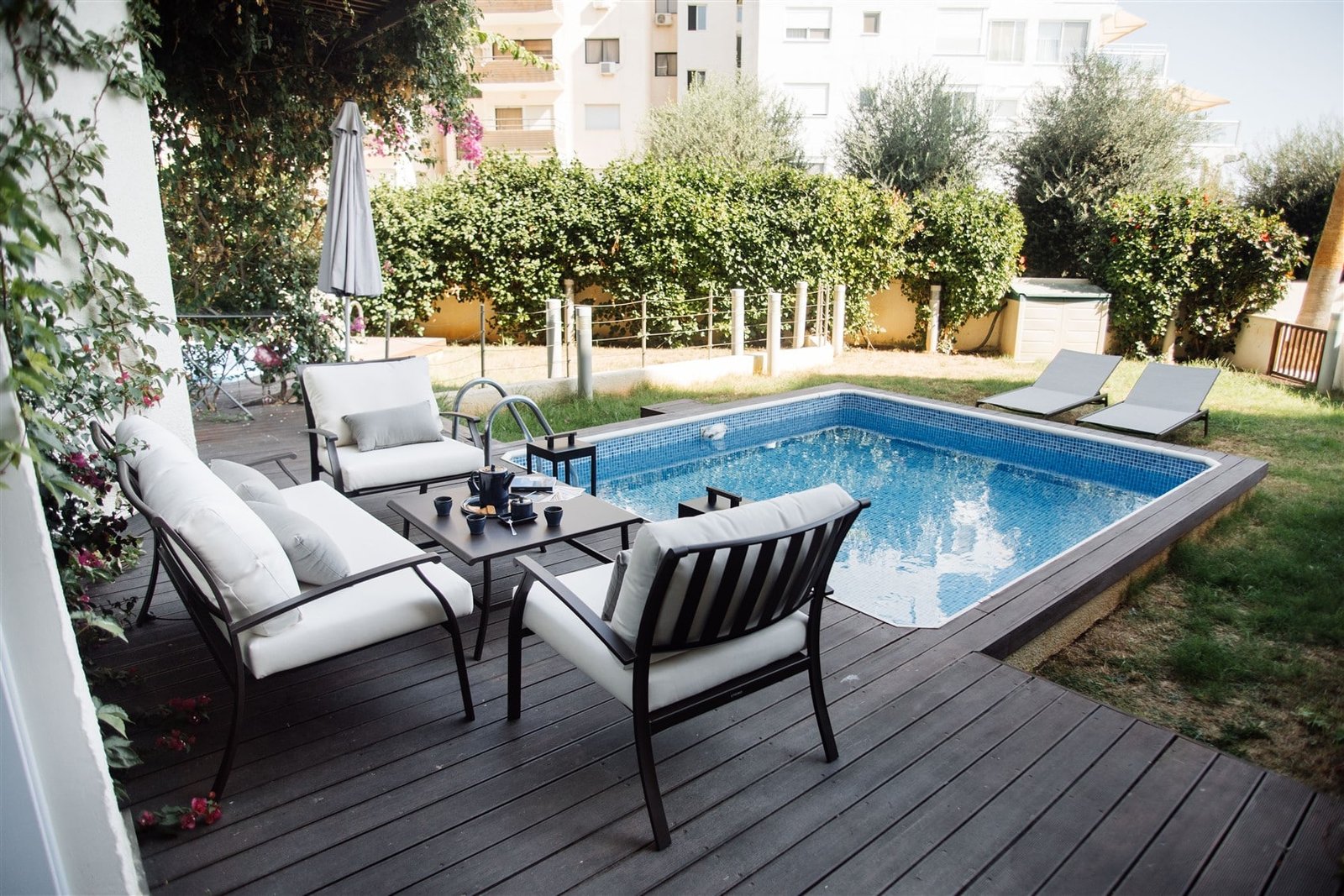 This is a one bedroom ground floor apartment with a private swimming pool and garden.