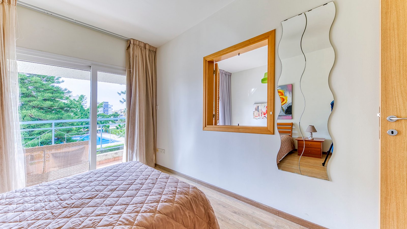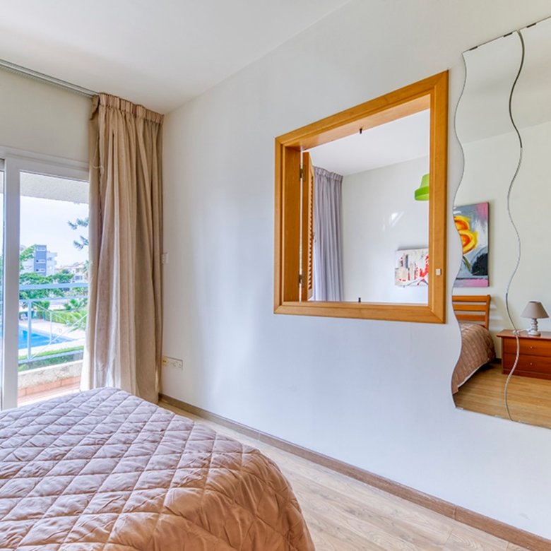 The complex offers a range of amenities, including two communal swimming pools (one for adults and one for children), a tennis court, private gated parking, and a beautifully landscaped garden.