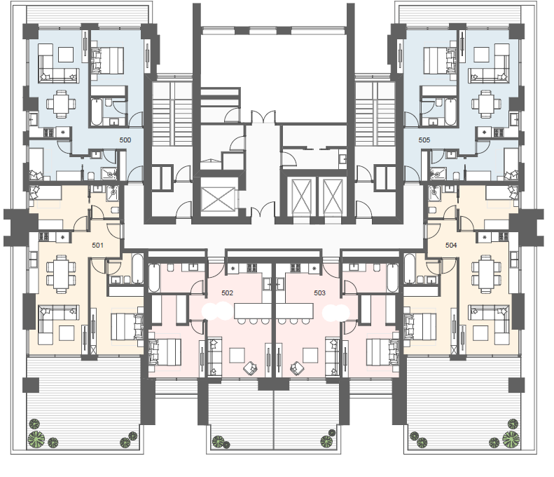 The building features a sophisticated lobby with reception and concierge services, as well as an IT room, cigar lounge, and laundry area. The complex also offers spacious outdoor amenities, such as a landscaped garden, swimming pool, and tennis court.