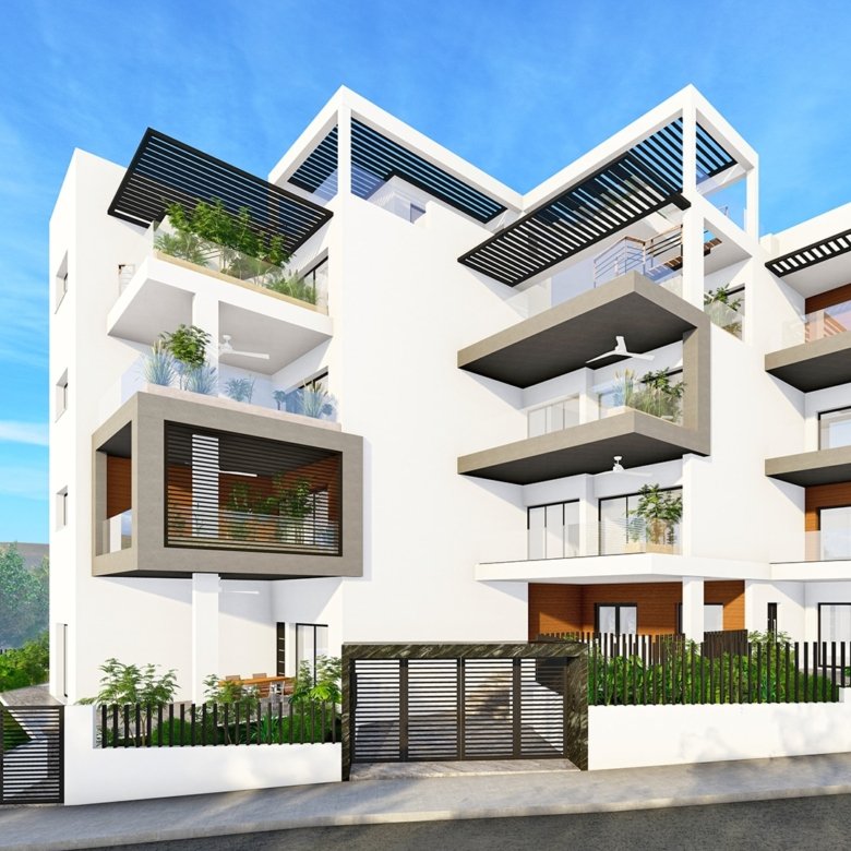 The development is located in Germasogeia area overlooking Limassol’s coastline. It consists of 10 luxurious modern apartments, each with covered parking out of which two flats (1 two-bed and 1 three-bed) are situated on the ground floor with their own private gardens and covered parking.