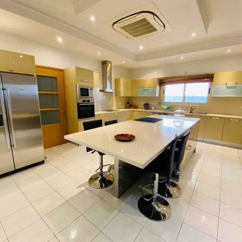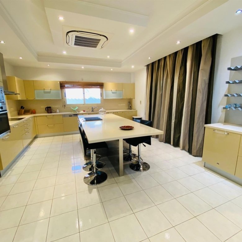 This luxurious villa consists of 3 levels: in the basement, there is a sauna with shower, storage room, maid’s room with shower, laundry room, technical room, and garage for 3 cars. On the ground floor, there is an entrance lobby, a big open-plan kitchen connected with a dining and living area with a fireplace, a separate office, and a guest WC. On the first floor, there are 4 spacious bedrooms (all en-suite with bathrooms), 2 covered balconies with sea views, and an ironing room.