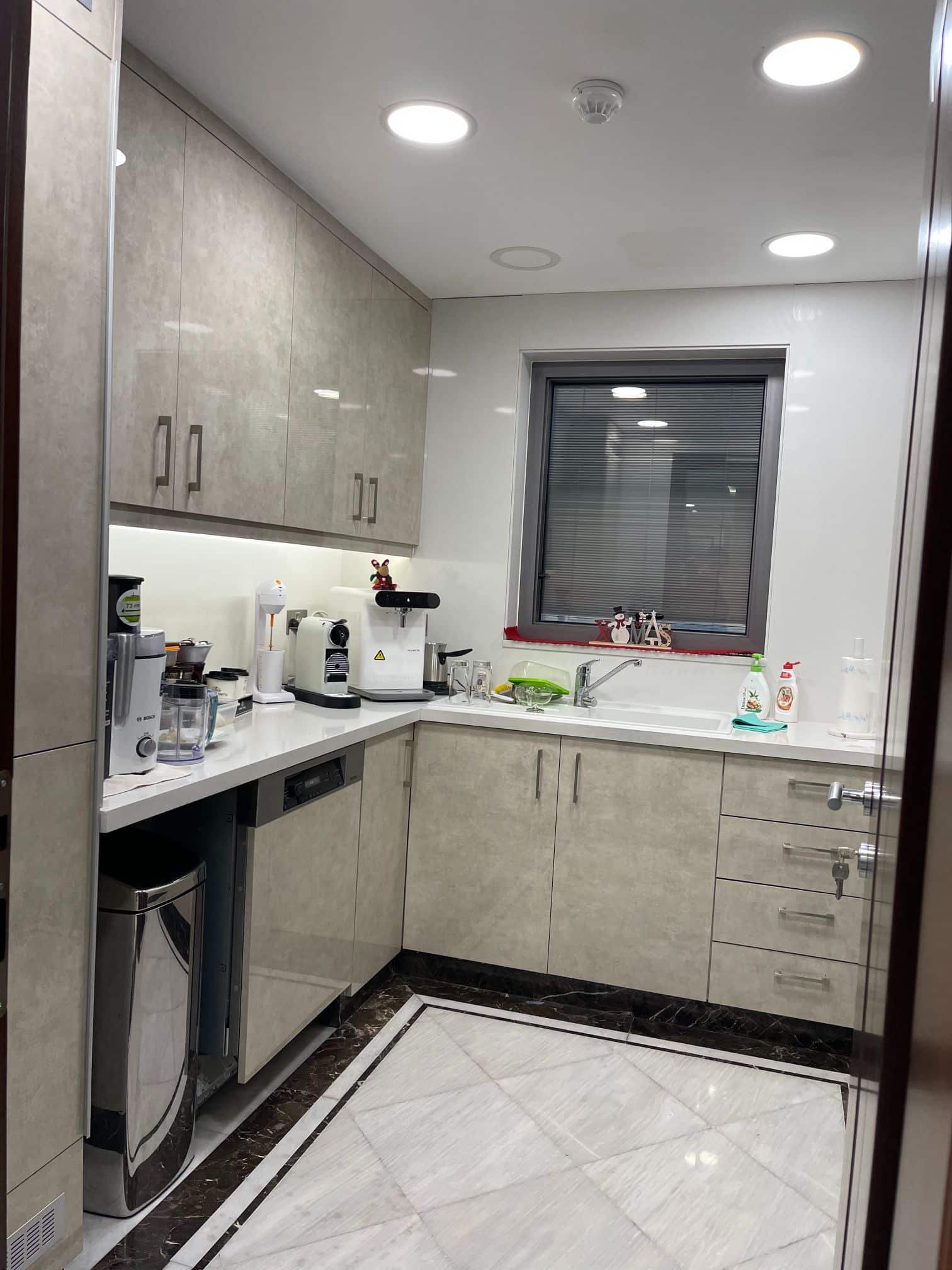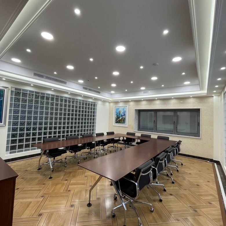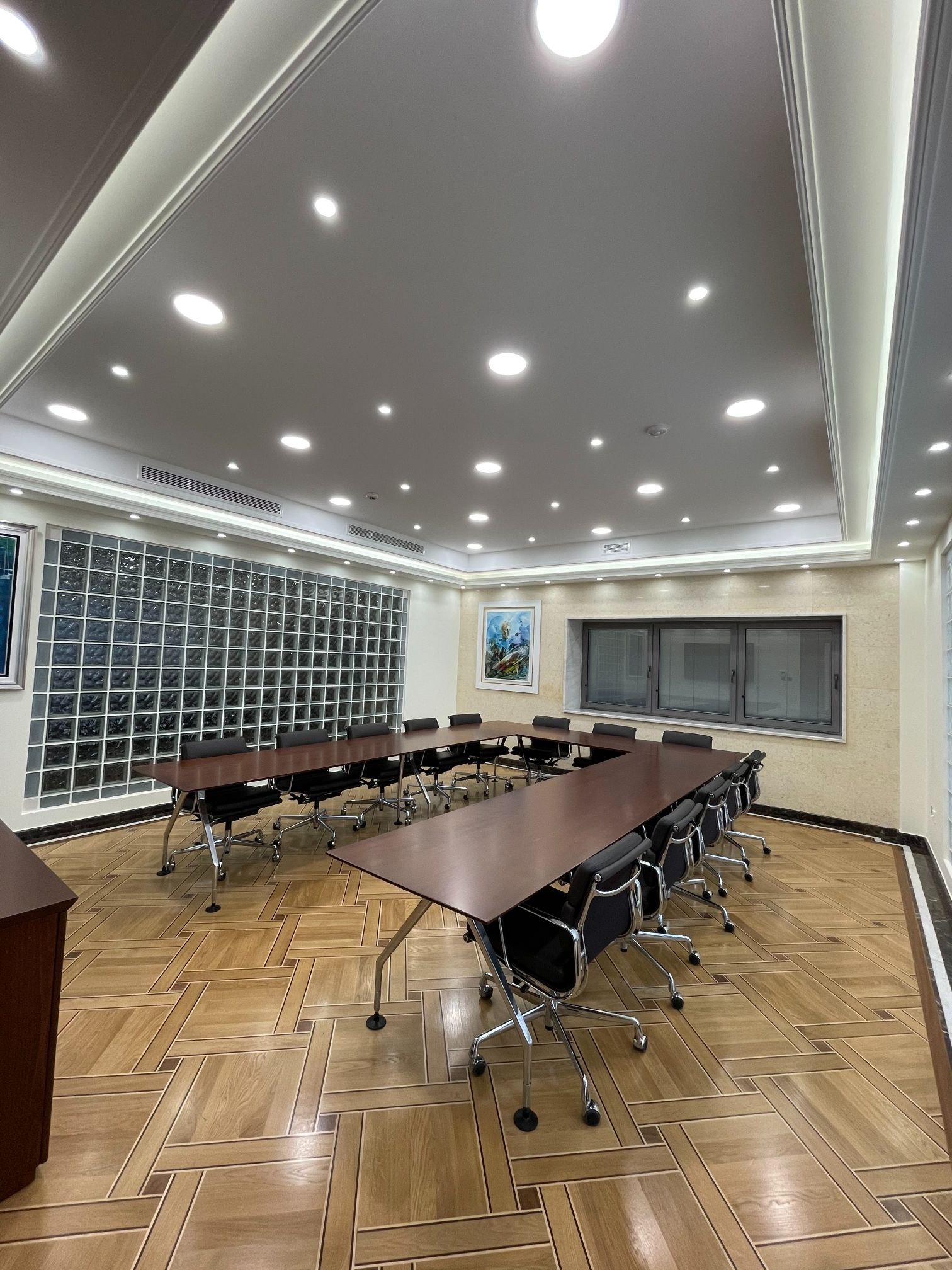 The available floors for rent are the 1st and 2nd, each covering 480 square meters. Each floor includes 11 spacious individual offices, a conference room, a reception area with a lobby and lift, a copy/printing space, and two bathrooms. Additionally, there are two kitchenettes per floor.