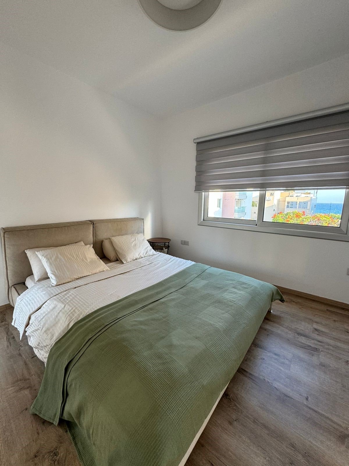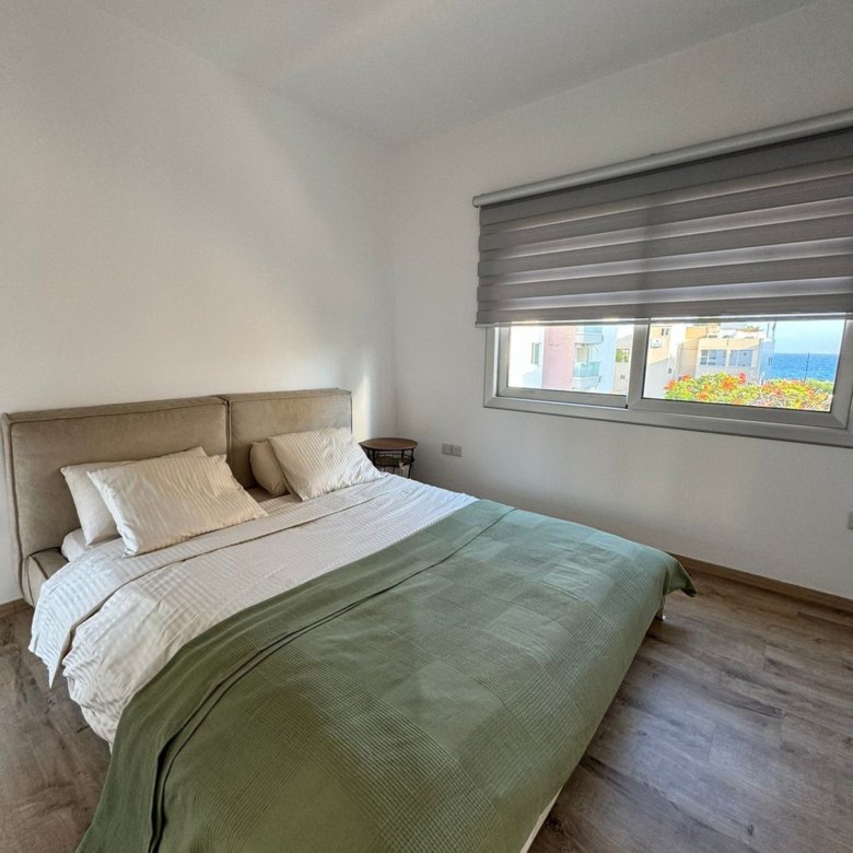 This spacious 4-bedroom apartment is located in Agios Tychonas, Limassol, just 100 meters from the sandy beach. The apartment features an open plan living and kitchen area equipped with high-quality Bosch appliances, a large veranda and two additional small balconies.
