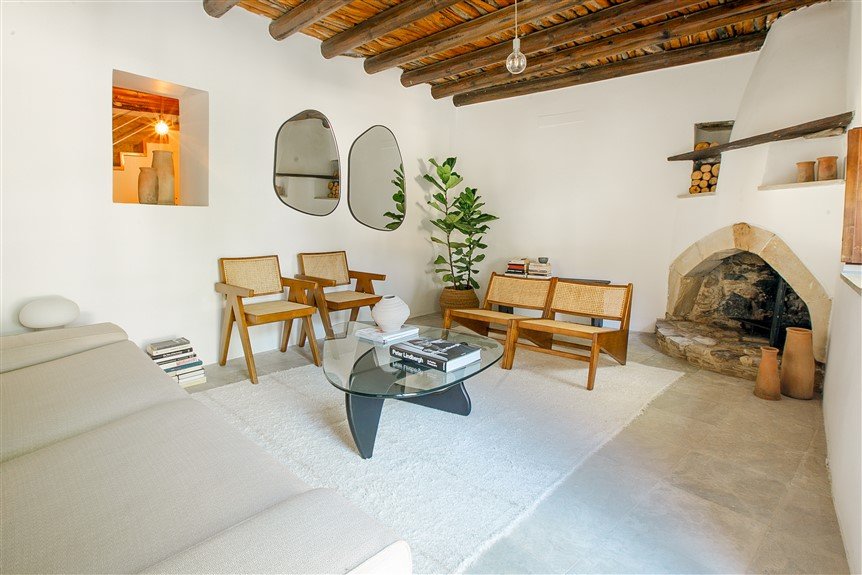 Mid-century modern furnishings complement the traditional stone elements of the heritage-listed home.