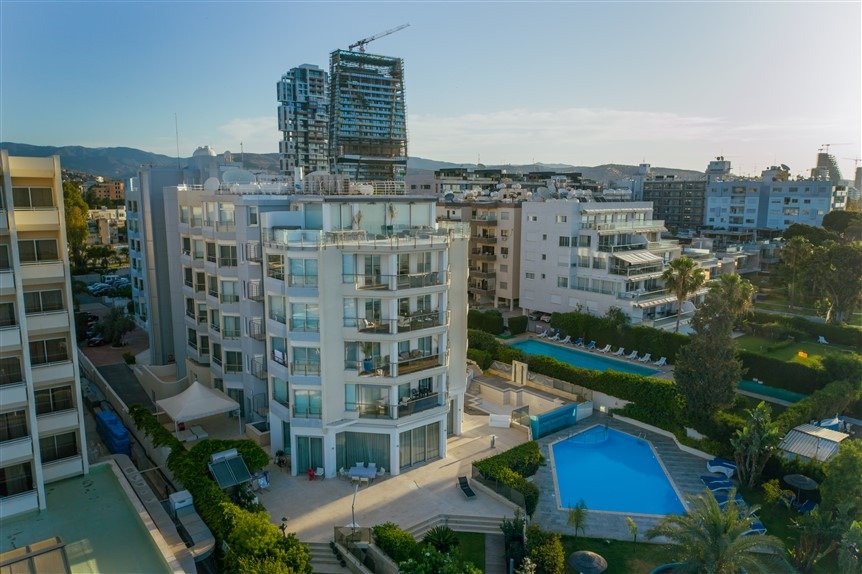 This apartment is located in a stylish and contemporary gated apartment complex. This wonderful condominium is perfectly situated in a prime location on on the first line of a sandy beach in Limassol. It is the first residential property right next to Dasoudi park, the city’s largest and only seafront park. The apartments are ideal for families with children and couples with exceptional taste. They are located in the heart of the cosmopolitan area of Limassol, with a variety of high-quality choices for recreation, leisure, and dining. The city center is just minutes drive away while it has easy access to the highway.