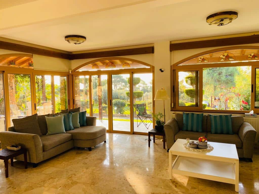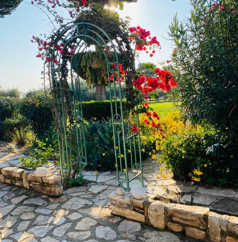 This beautiful villa is situated in a tranquil, green area surrounded by flowers and trees.