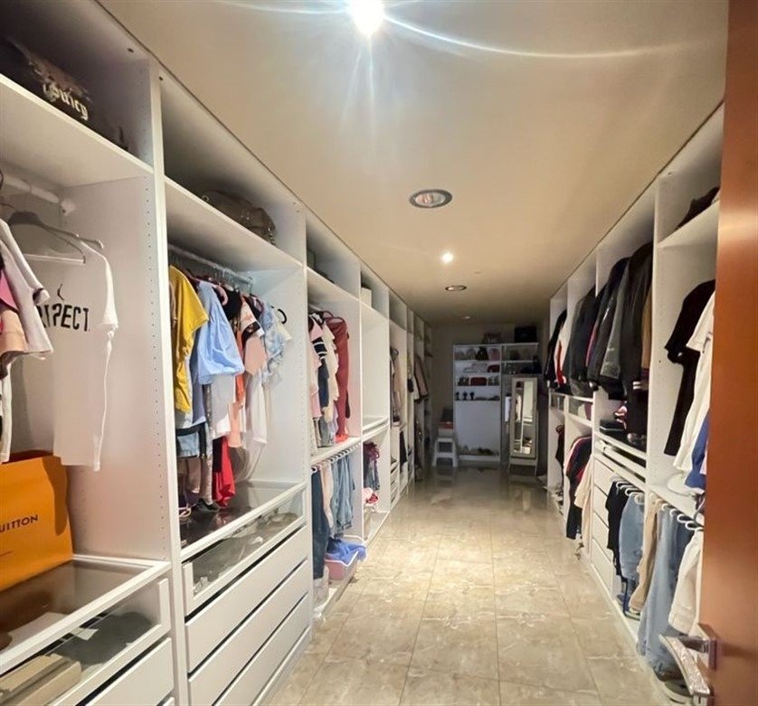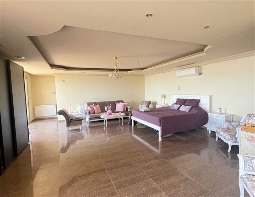On the second level, there are 3 extra master en-suite bedrooms, one of which has a huge walk-in closet. Also, there is a huge space with a home cinema, living room, and an open-plan kitchen.