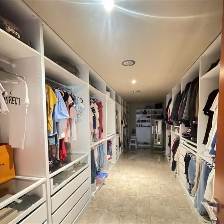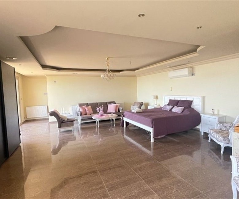 On the second level, there are 3 extra master en-suite bedrooms, one of which has a huge walk-in closet. Also, there is a huge space with a home cinema, living room, and an open plan kitchen.