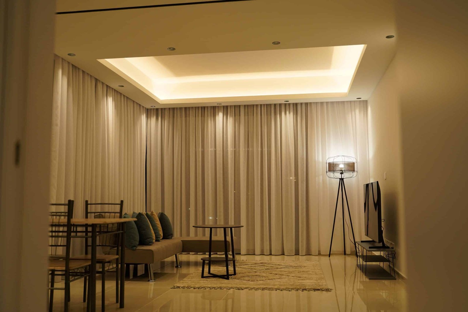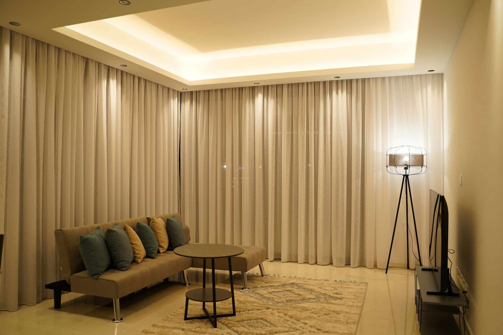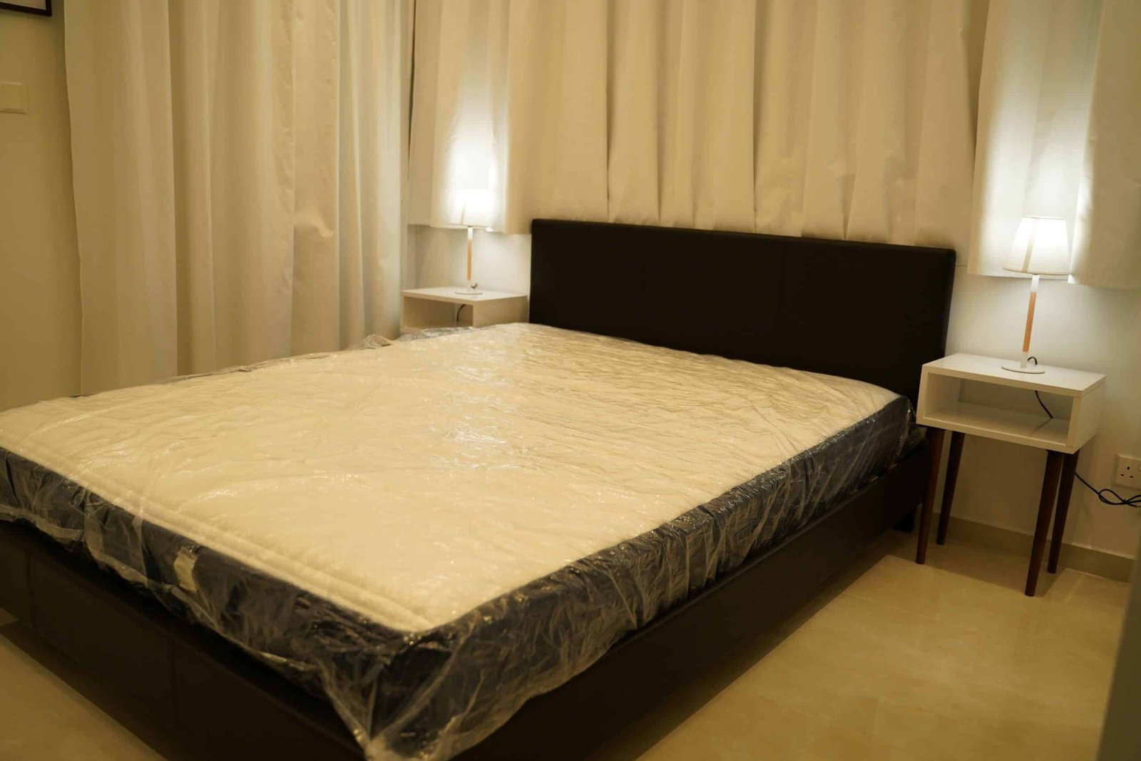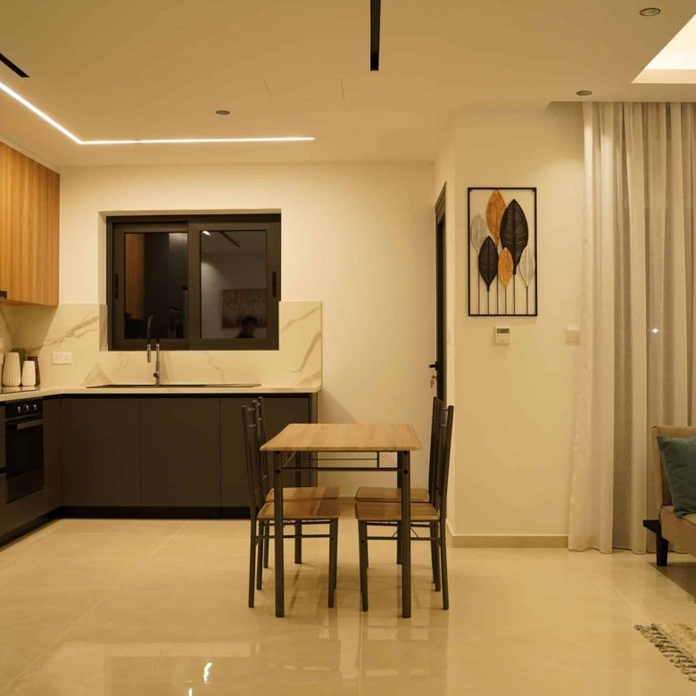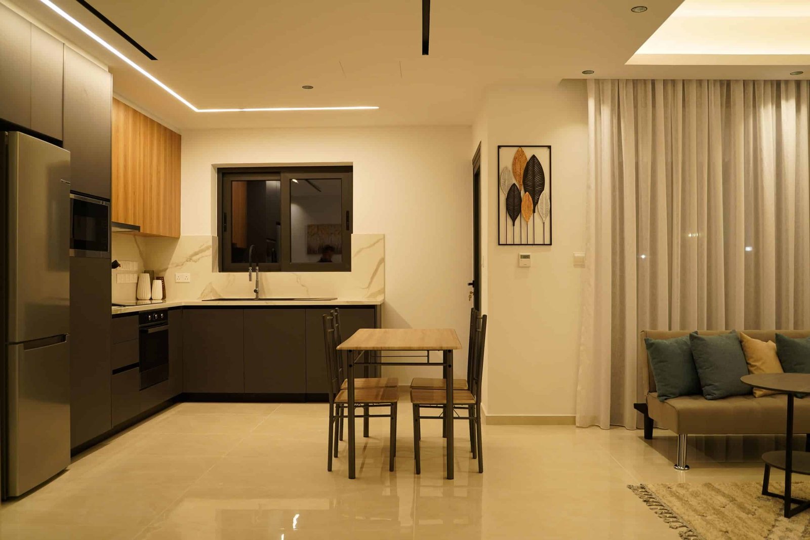 Semi-furnished, it offers a comfortable and modern living environment with an open-plan layout that combines the living room and kitchen. The apartment features three well-sized bedrooms, including one en-suite bedroom with a convenient dressing room and storage.