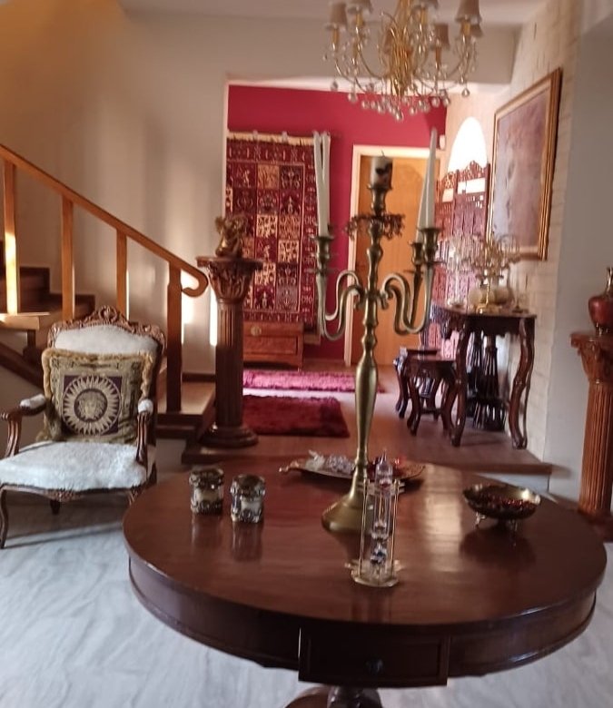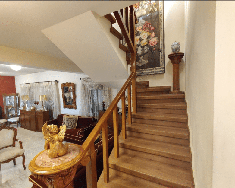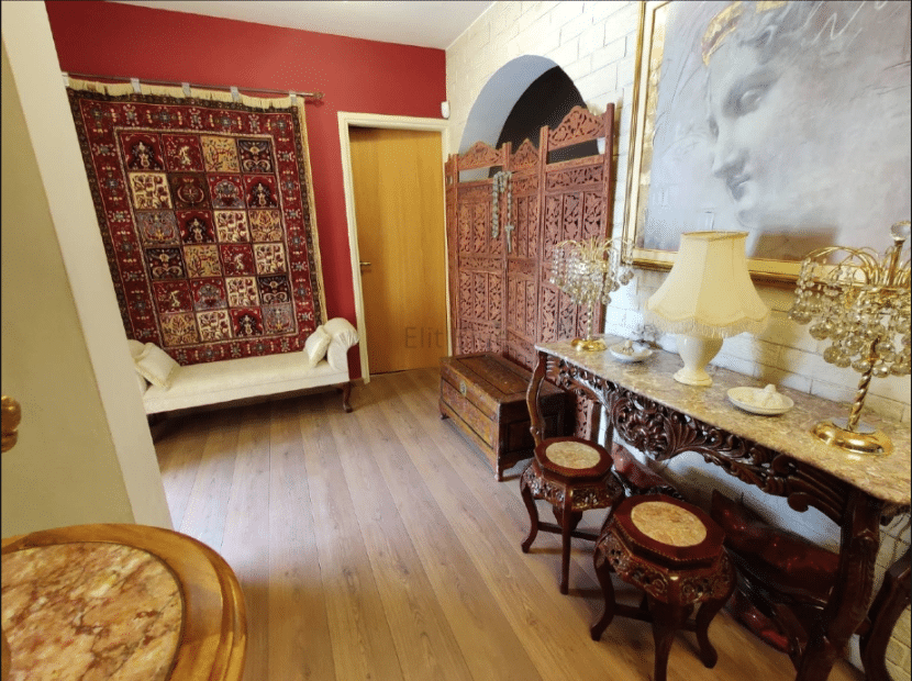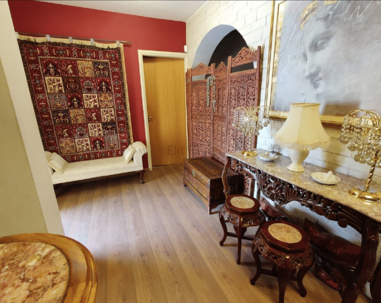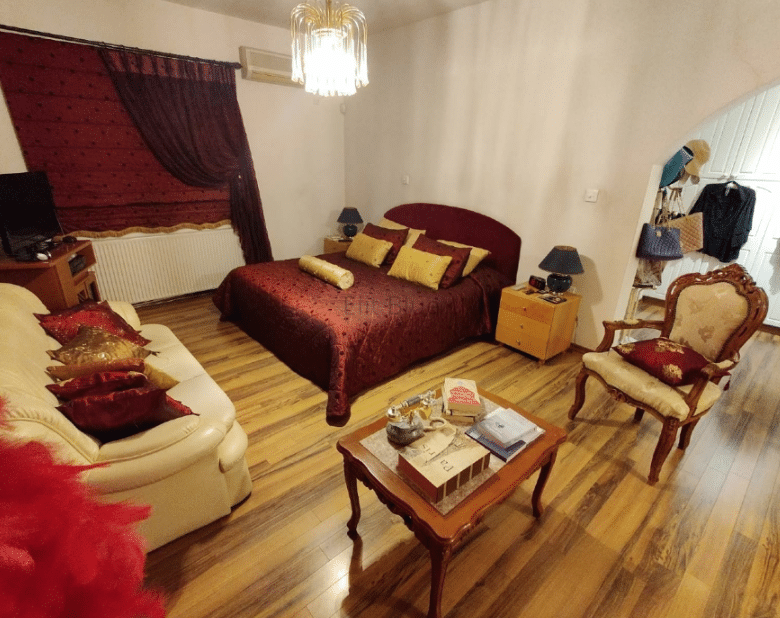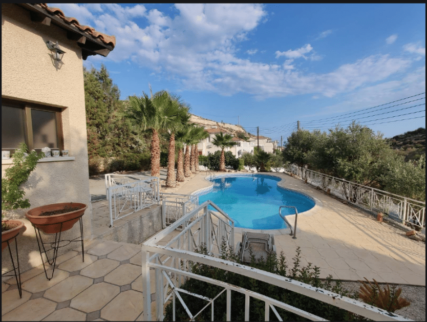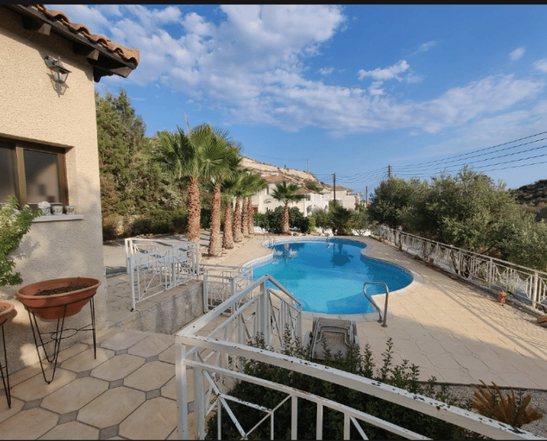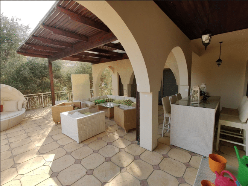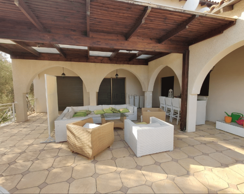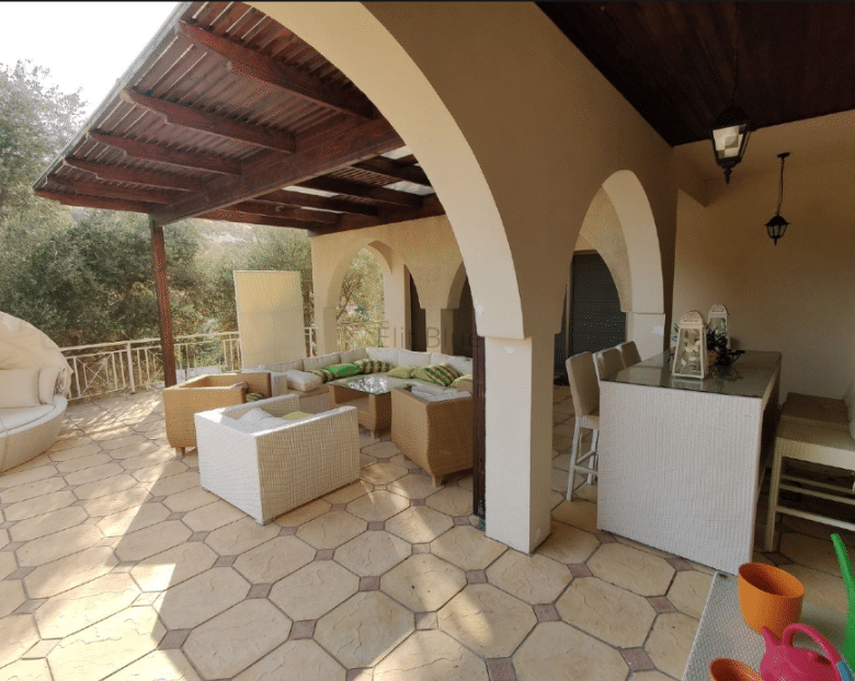 The house has two floors, fully furnished (curtains, bedcovers in all rooms), paintings, expensive carpets, lampshades, chandeliers, decorations etc. There is large separate kitchen, fully equipped and furnished with sitting room, 3 big bedrooms (master bedroom with walk-in wardrobe and bathroom), main bathroom with bathtub and shower, guests WC near the sitting room on the ground floor. Extra guest WC and shower is outside on the veranda part, near the swimming pool. Storage room/laundry and garage inside the house connected to the kitchen (it can be converted into an extra room if requested as a maids room or playroom). From both floors there is beautiful sea view and mountains view. Perfect property for those, seeking the quite privacy, with spacious plot and appreciates quality finishes of the house made for own use.