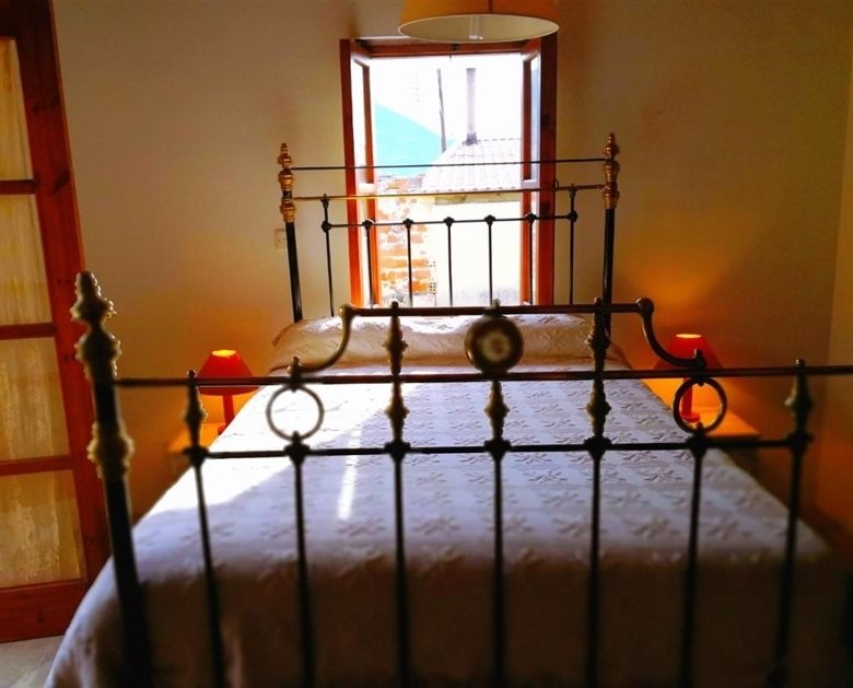 The country house has a satellite flat-screen TV. The accommodation is fitted with a kitchenette. There is a separate bedroom with a traditional bed and a sofa bed in the seating area.