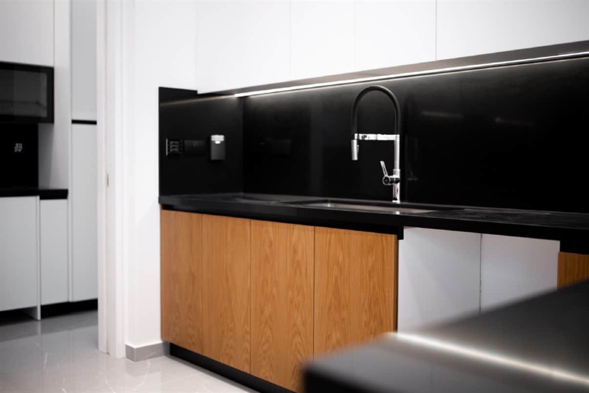 The open-plan kitchen is equipped with brand-new electrical appliances, including a stove, hood, dishwasher, refrigerator, and oven. The house also has energy-efficient aluminium windows and doors, as well as new concrete flooring throughout.