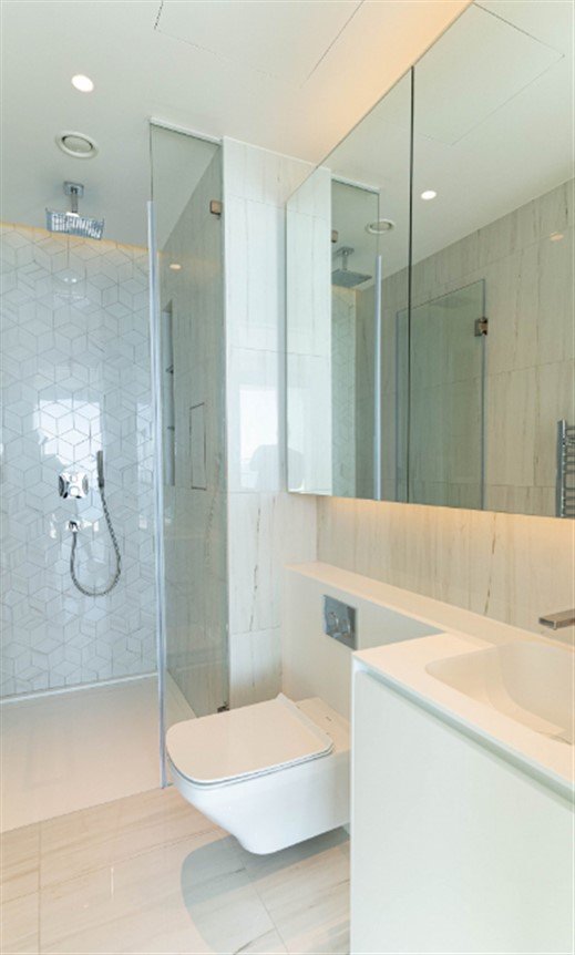 The Italian kitchen, designed by Arclinea, has integrated Miele appliances showcasing the enhanced specifications throughout the apartment.